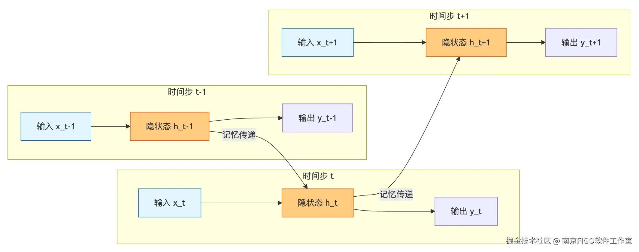 - 解释:RNN 是按顺序处理数据的。处理第一个词叫 ,处理第二个词叫 ,以此类推。