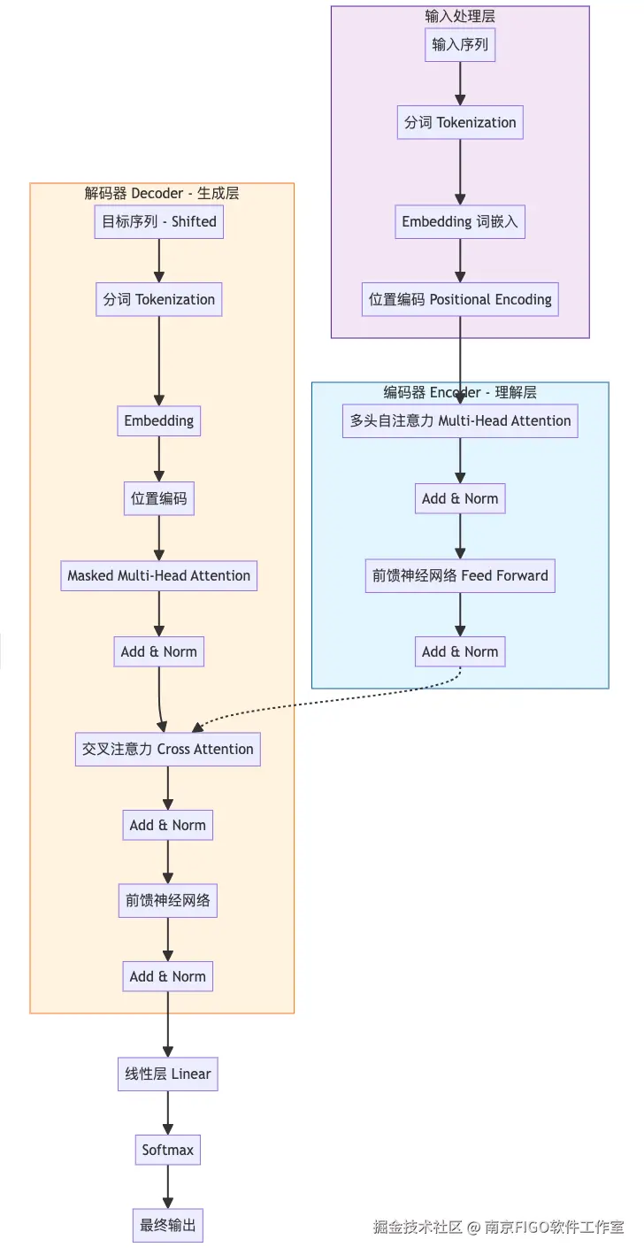 左边的蓝色方块是 Encoder,它的任务是深刻理解输入的内容。
