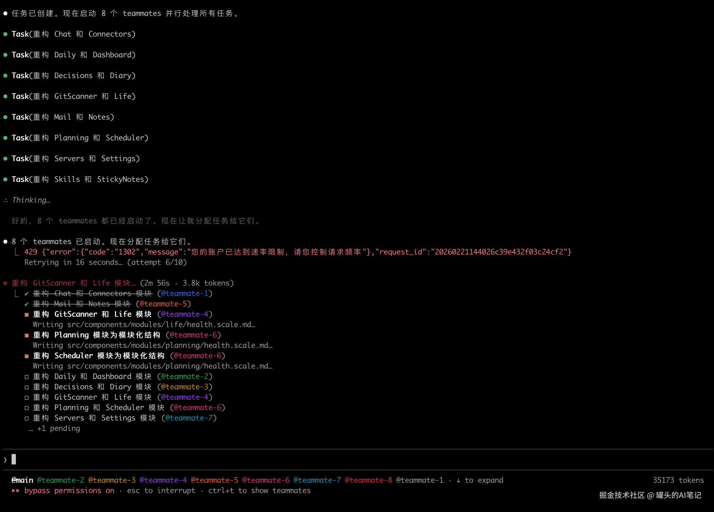 以前单个对话,限速还好,忍忍就过了。但 Agent Teams 不一样——多个 Agent 同时在跑,并发请求一下子上去,很快就触发并发限速。整个 Team 集体卡住,全部在等,你干坐在那什么都做不了。