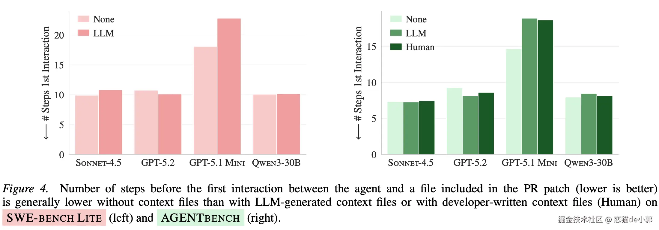 - 开发者写的 context files 相比 NONE 平均带来小幅提升(平均 +4% 左右),但也会让步骤/成本上涨
