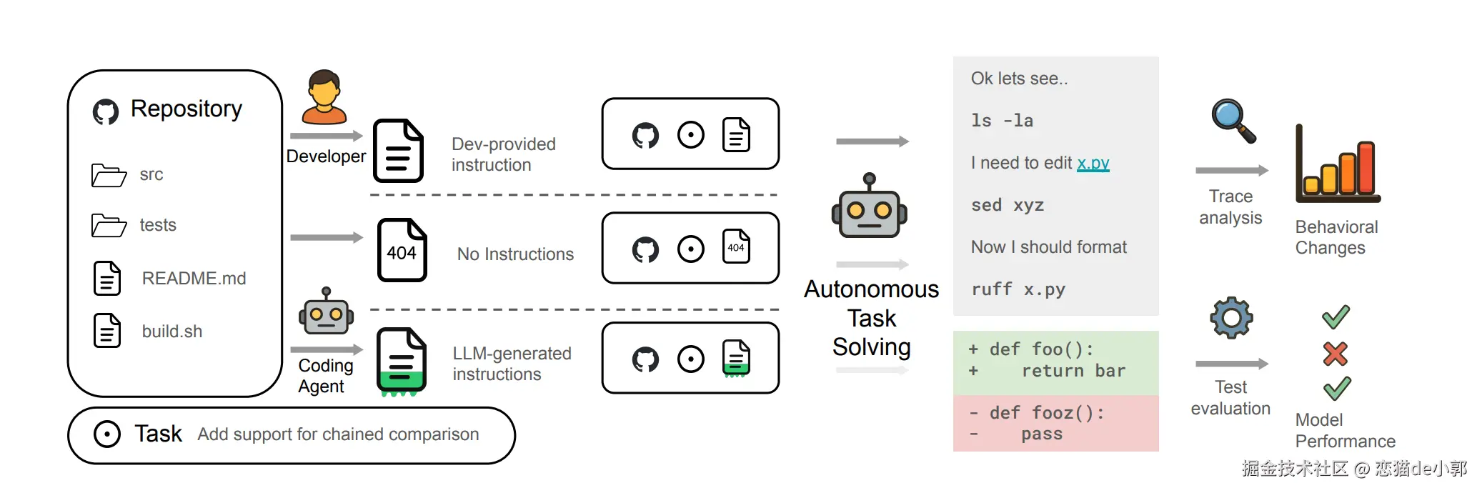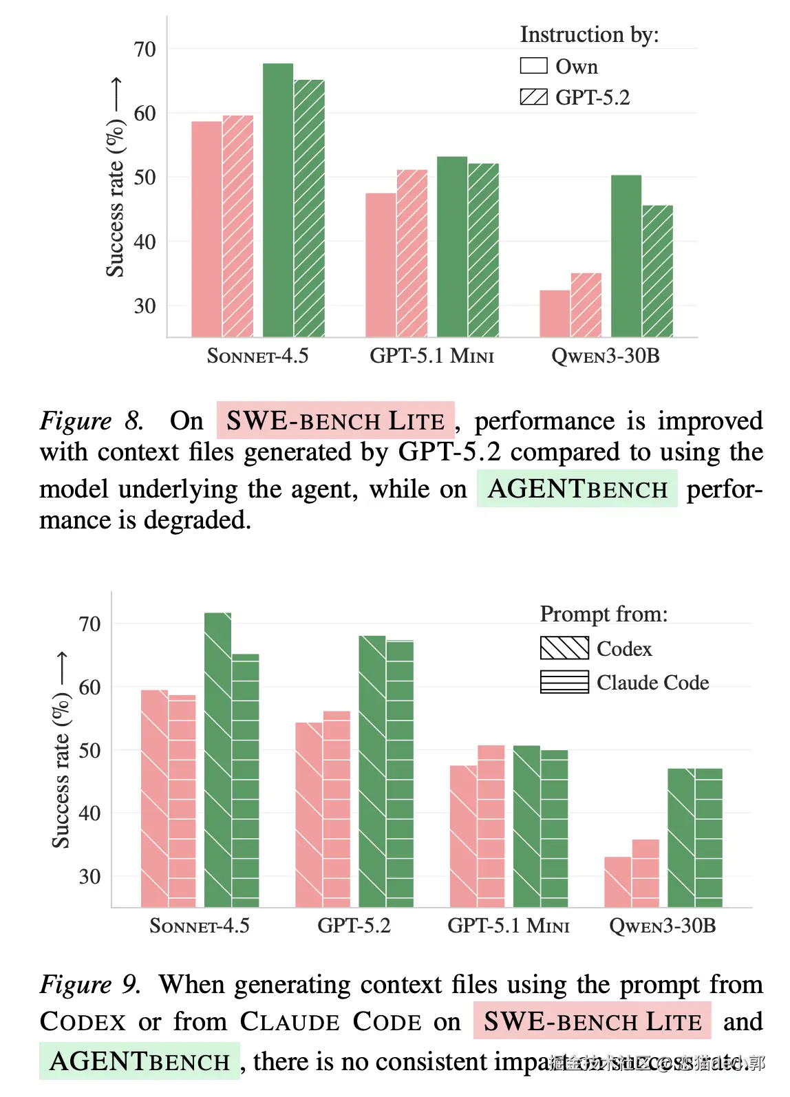 这里 AGENTBENCH 的意义:以前 benchmark 没赶上 AGENTS.md 流行,所以你没法直接测真实世界开发者写的 AGENTS.md 到底有没有用,所以他们为此新做了数据集。
