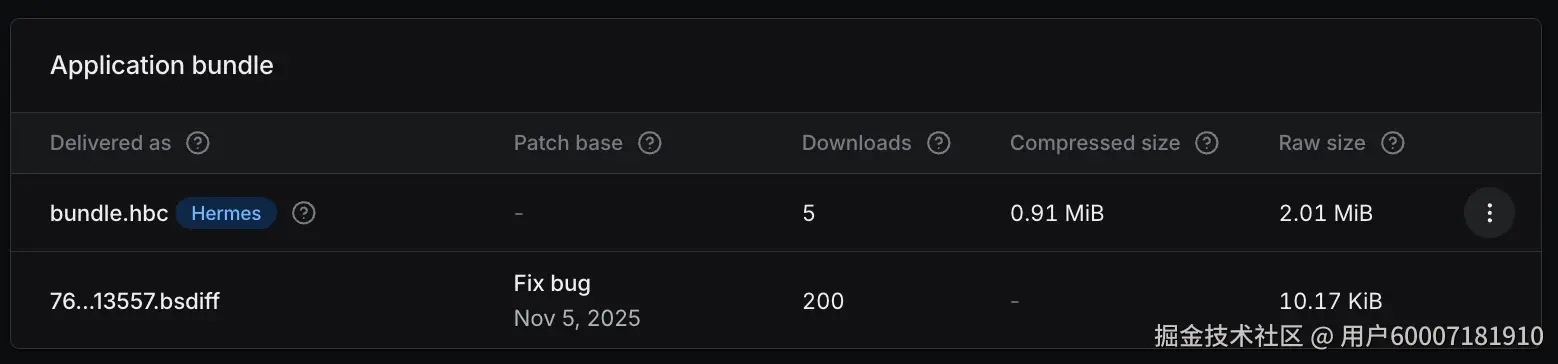 随着 Expo SDK 55 的发布,你可以选择启用Hermes 字节码差分更新(目前处于测试阶段)。该功能会将更新以二进制补丁的形式分发,而非完整的 JavaScript 包。客户端无需下载全新的字节码文件,只需在已安装的文件基础上应用差分补丁,既能减小下载体积,也能降低带宽消耗。