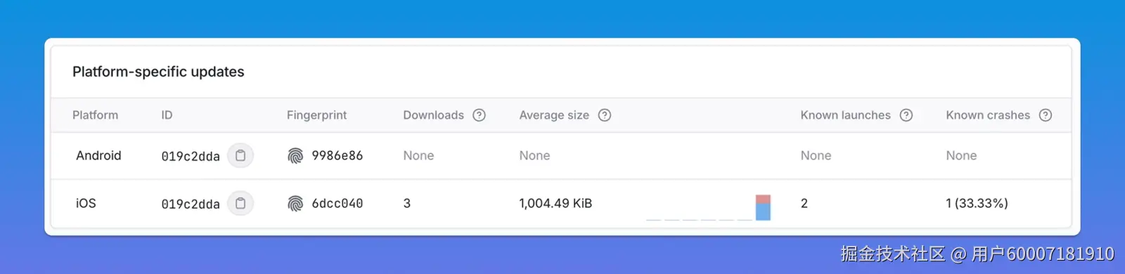 如果采用率异常偏低,这本身就是一个重要信号:可能是用户打开应用的频率不足以触发更新检查,也可能是该更新并非你预期的构建版本所能接收 —— 例如,更新的目标运行时版本,与这些构建版本支持的版本不匹配。