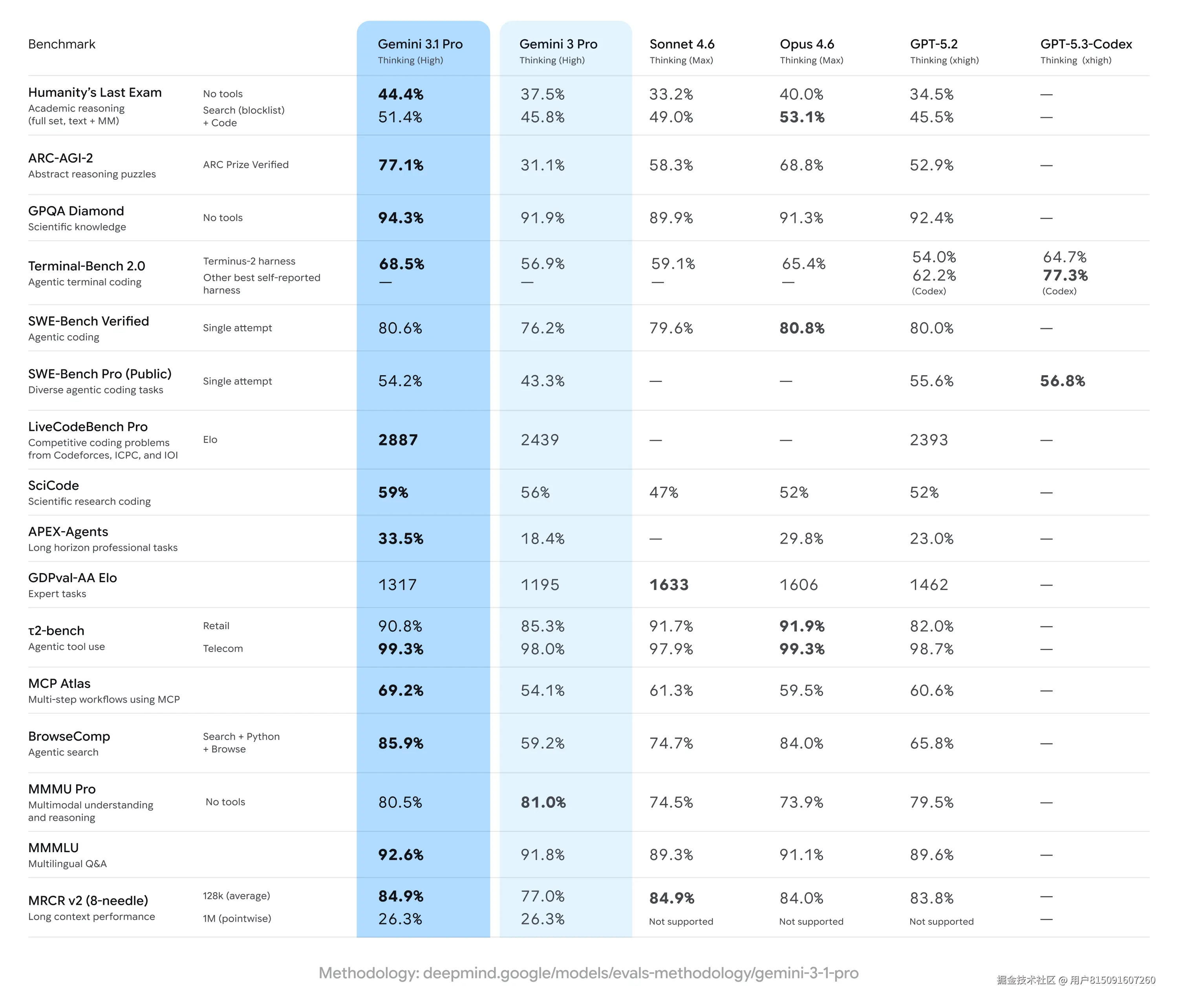 自去年11月发布 Gemini 3 Pro 以来,反馈以及技术进展的速度推动了这些快速改进。现在以预览形式发布 3.1 Pro,以验证这些更新,并在正式全面发布前,继续在诸如高阶代理式工作流等领域推进进一步的改进。