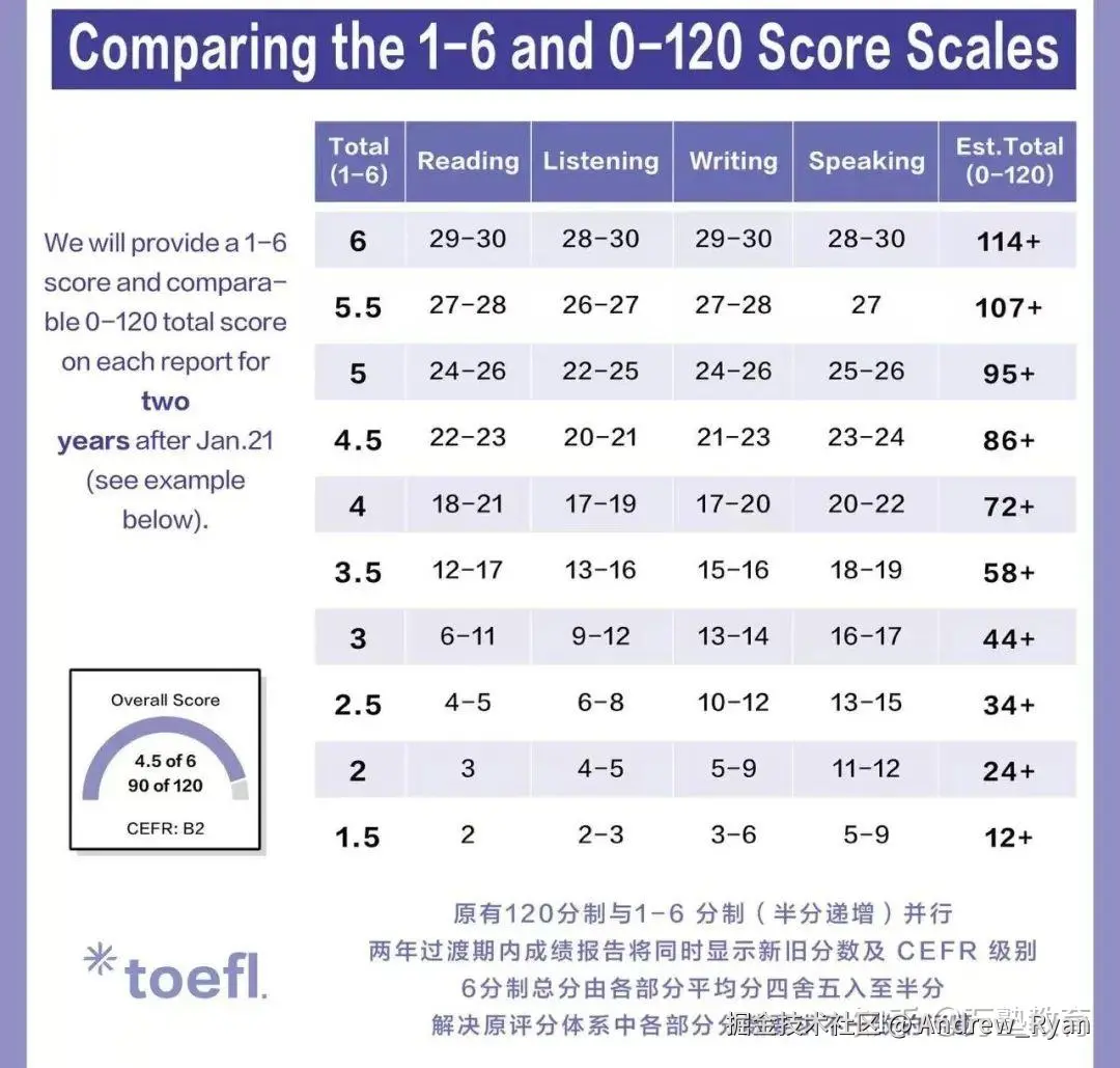 ✅ 评分双轨制: 1-6分制对标CEFR,120分旧制并行,申请更灵活!