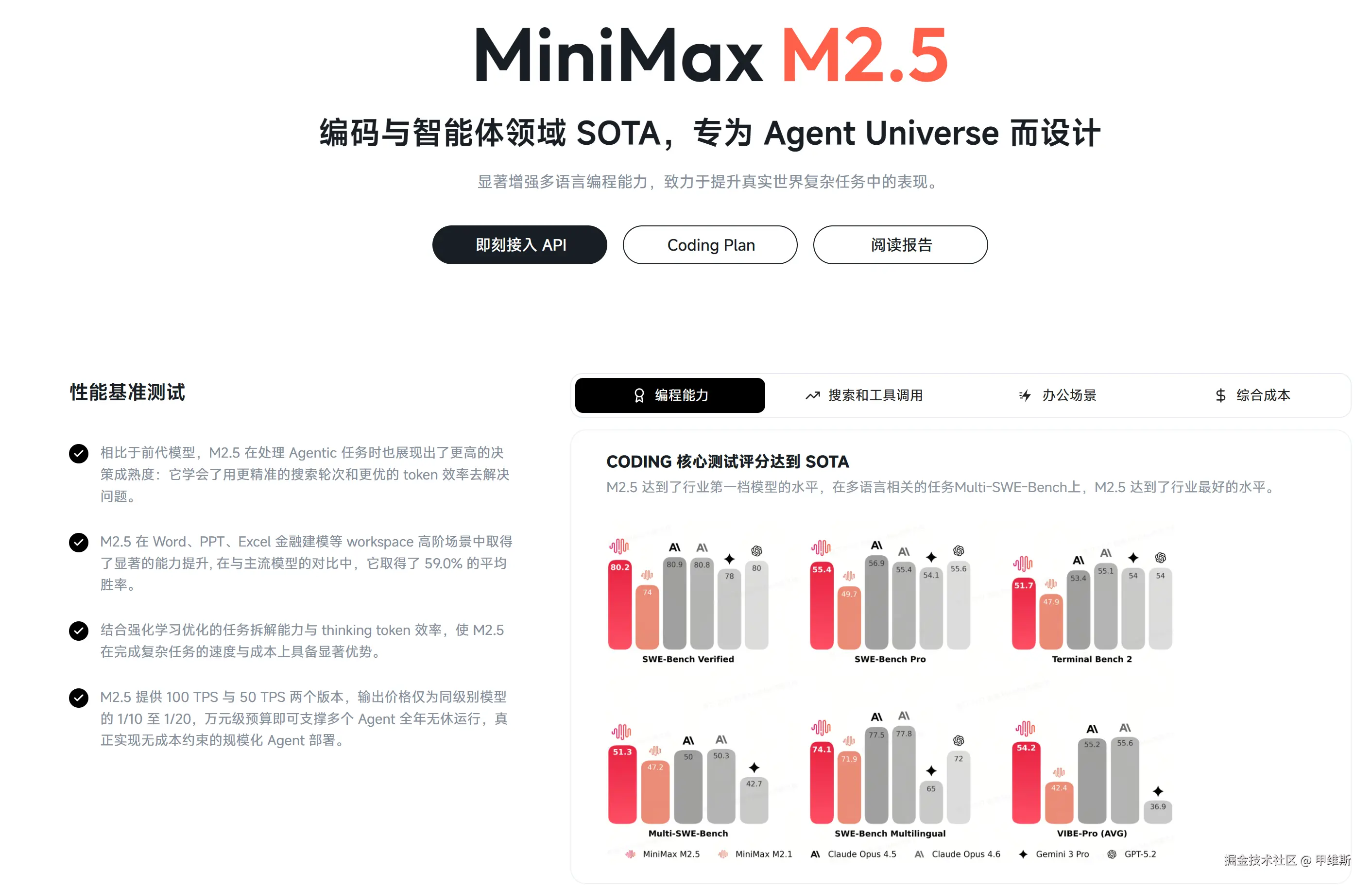 MiniMax 已经喊出了:“编码和智能体领域 SOTA,专为智能体宇宙而设计”,这已经给人屌炸天的感觉了!