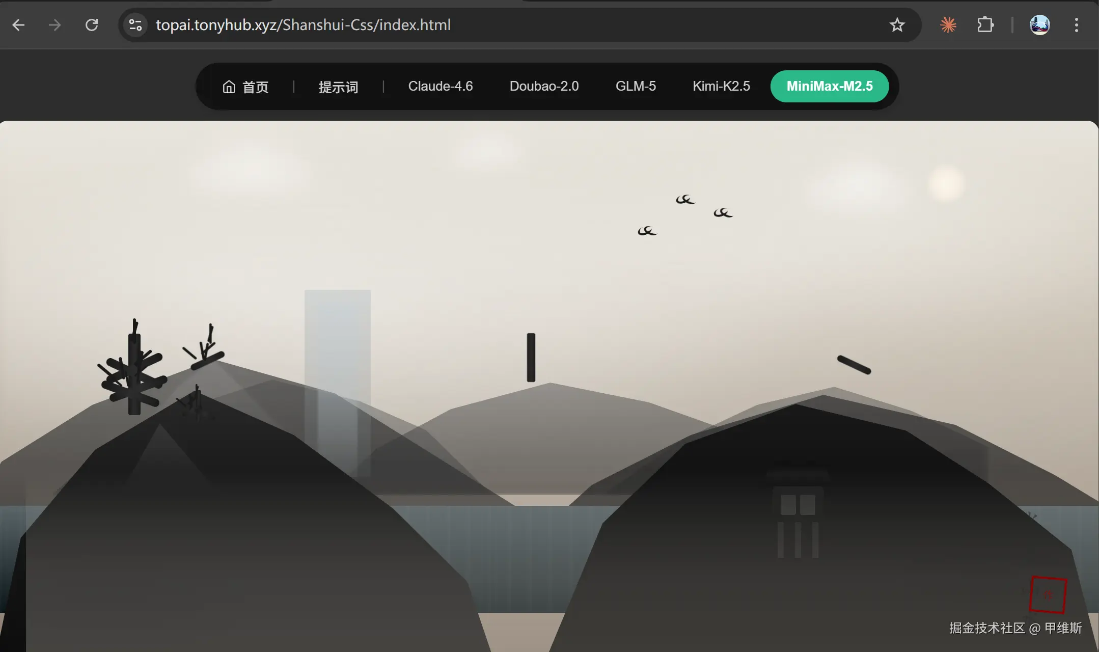 MiniMax 的话,表现不是太稳定,时而还可以,时而会出现一些错误。指令遵循没有特别到位,审美啥的还不存在的。可能是我测试的这些例子他们还没有做针对性的优化训练,所以表现并不是太好。