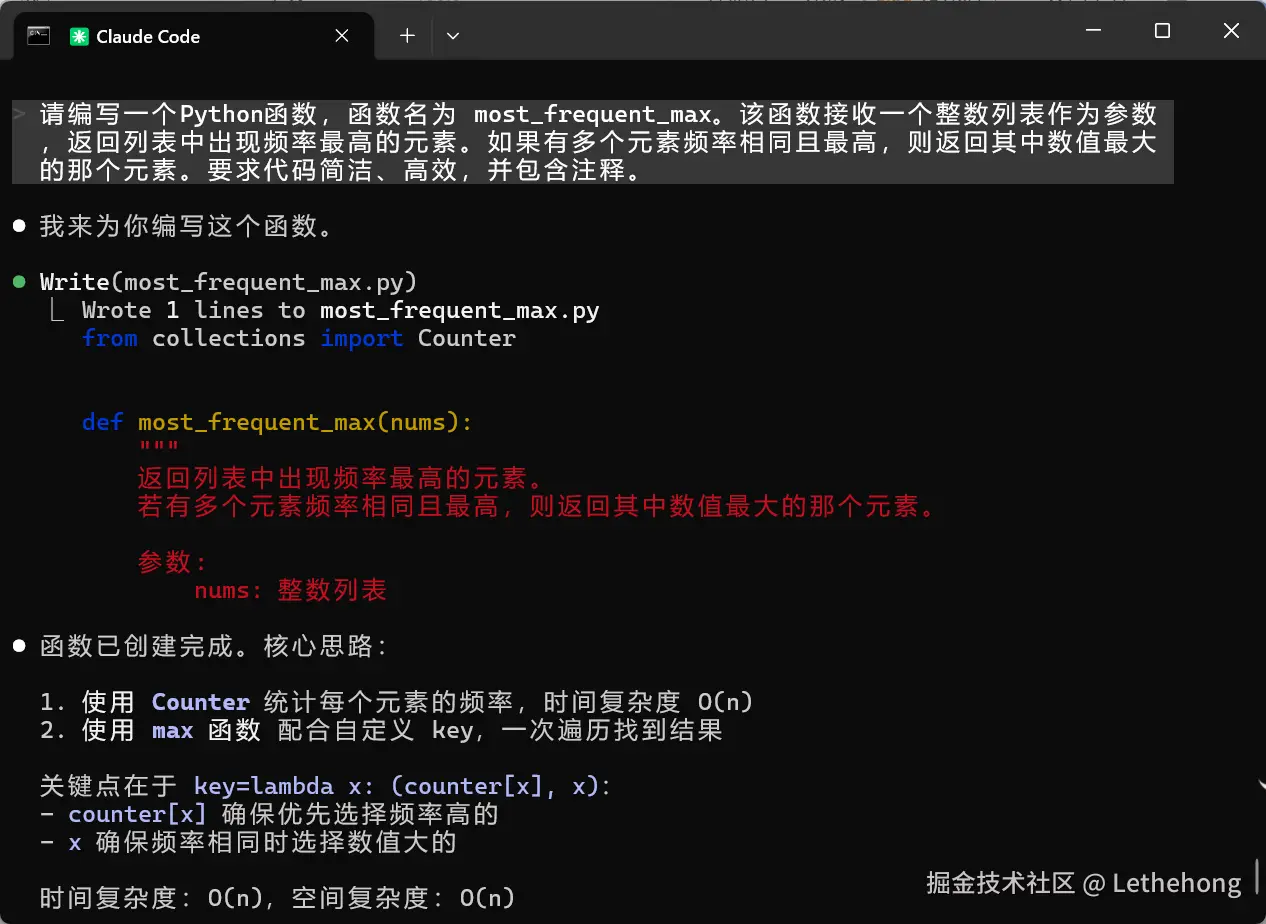 预期输出: GLM-5会生成一个完整的Python函数,包含函数定义、注释和实现逻辑。开发者可以直接复制代码使用,无需修改。