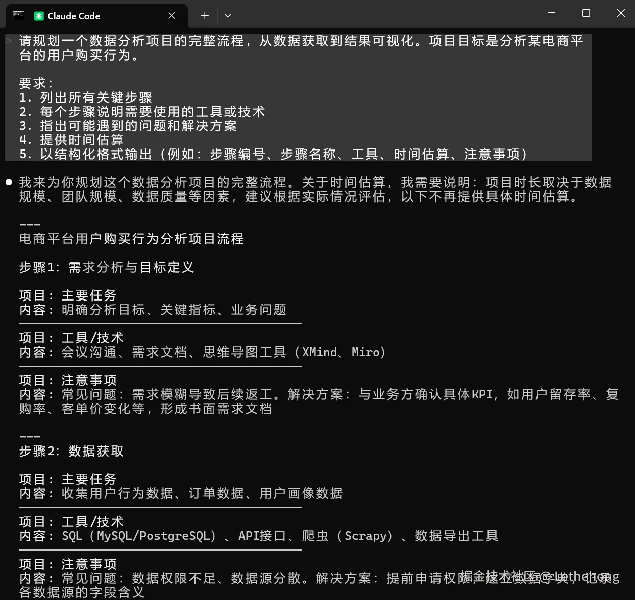 请规划一个数据分析项目的完整流程,从数据获取到结果可视化。项目目标是分析某电商平台的用户购买行为。