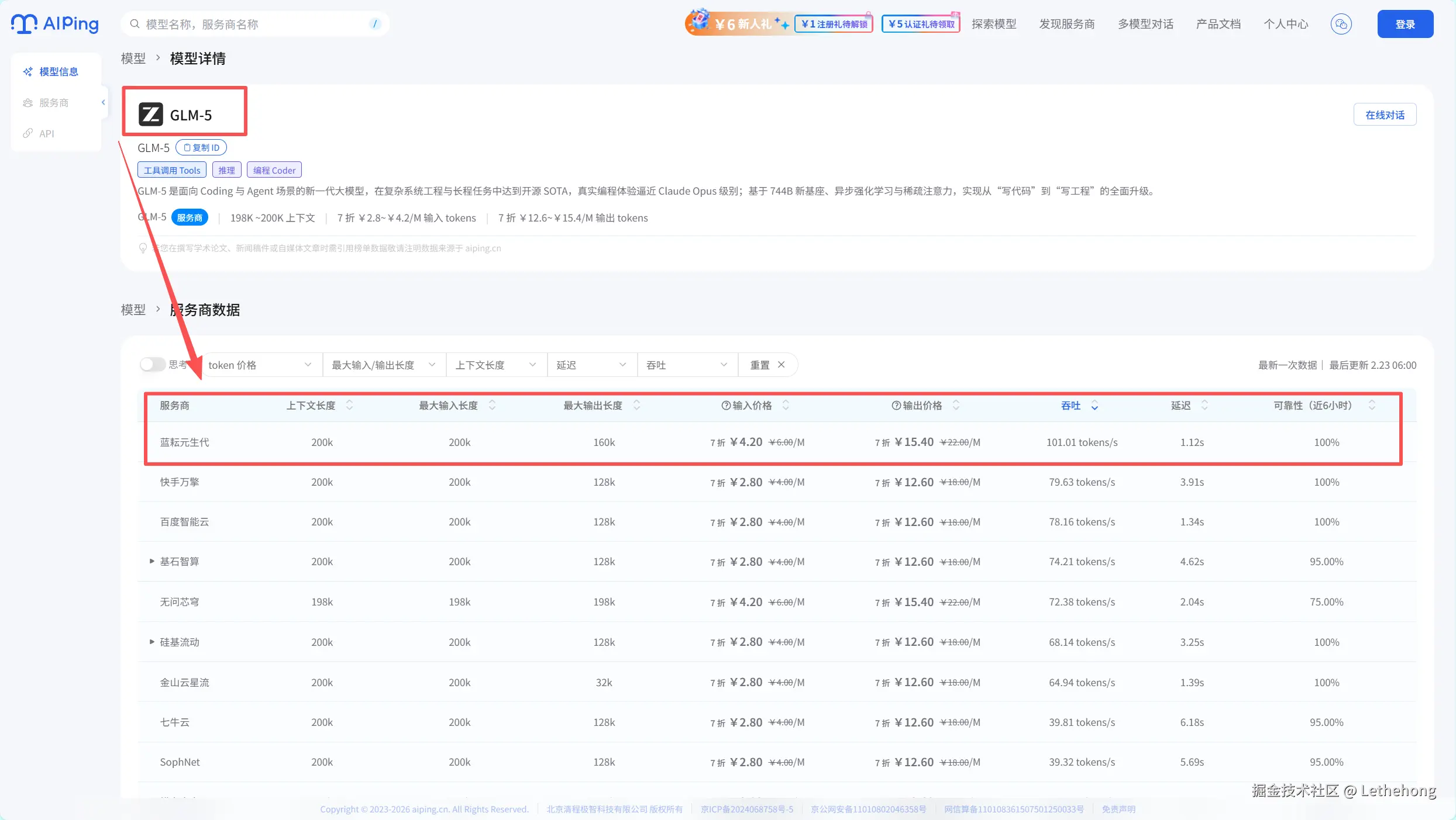 本次测评在蓝耘元生代MaaS平台的环境中进行,旨在全面评估GLM-5模型的各项能力,并为开发者提供详尽的实践指南。测试方法包括:通过Python脚本调用平台API进行对话生成任务,使用官方提供的示例代码进行基准测试,以及参考官方和第三方公布的评测数据。我们重点关注GLM-5在编程、智能体任务和对话等核心场景的表现,并结合平台的实际使用体验,分析其性能优势与适用场景。
