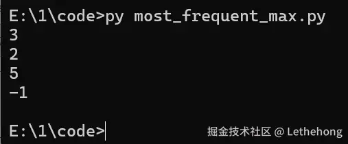 print(most_frequent_max([-1, -1, -2, -2])) # 输出: -1