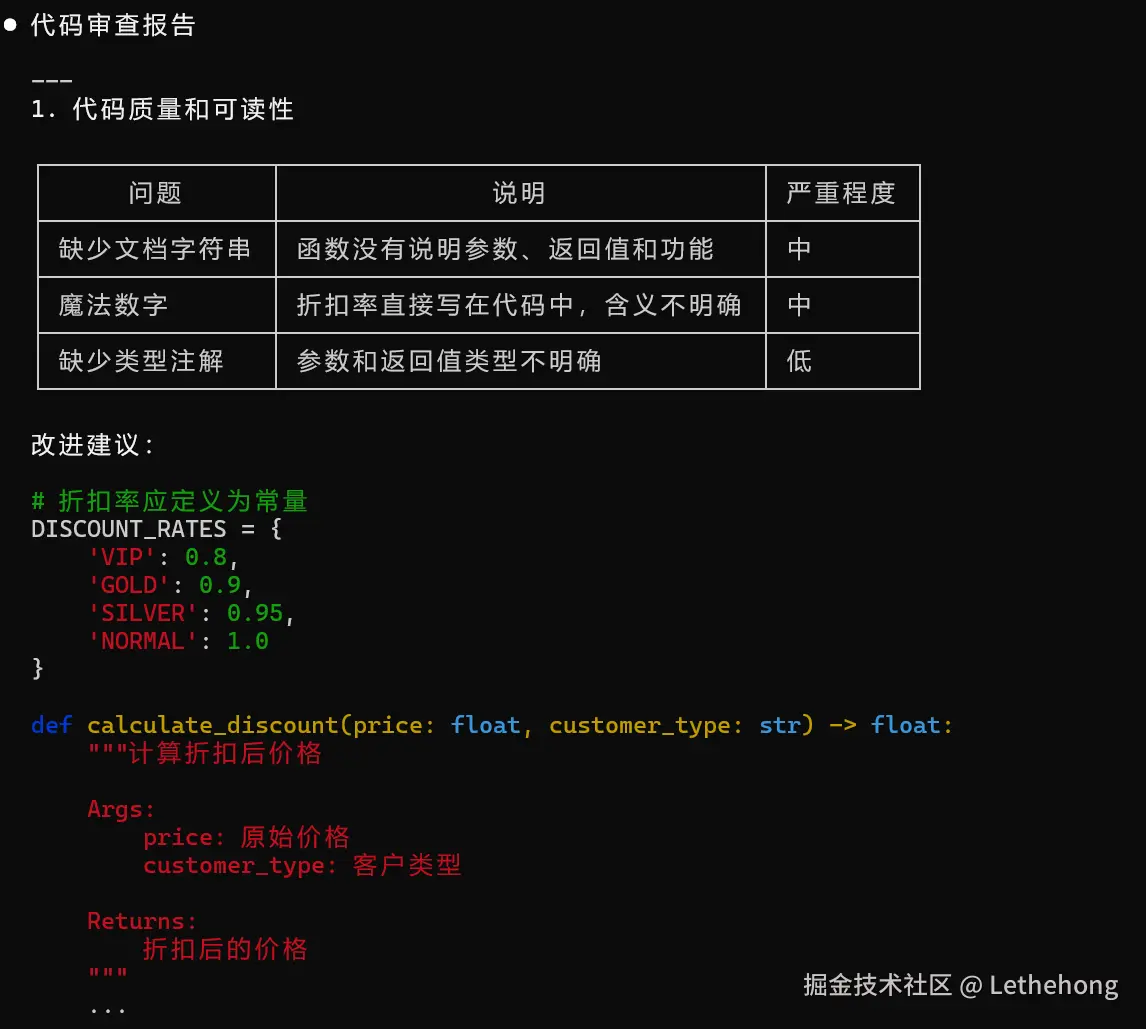 预期输出: GLM-5会生成一个详细的代码审查报告,指出代码中的问题并提供具体的修改建议,帮助开发者改进代码质量。