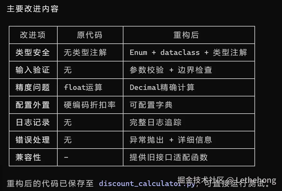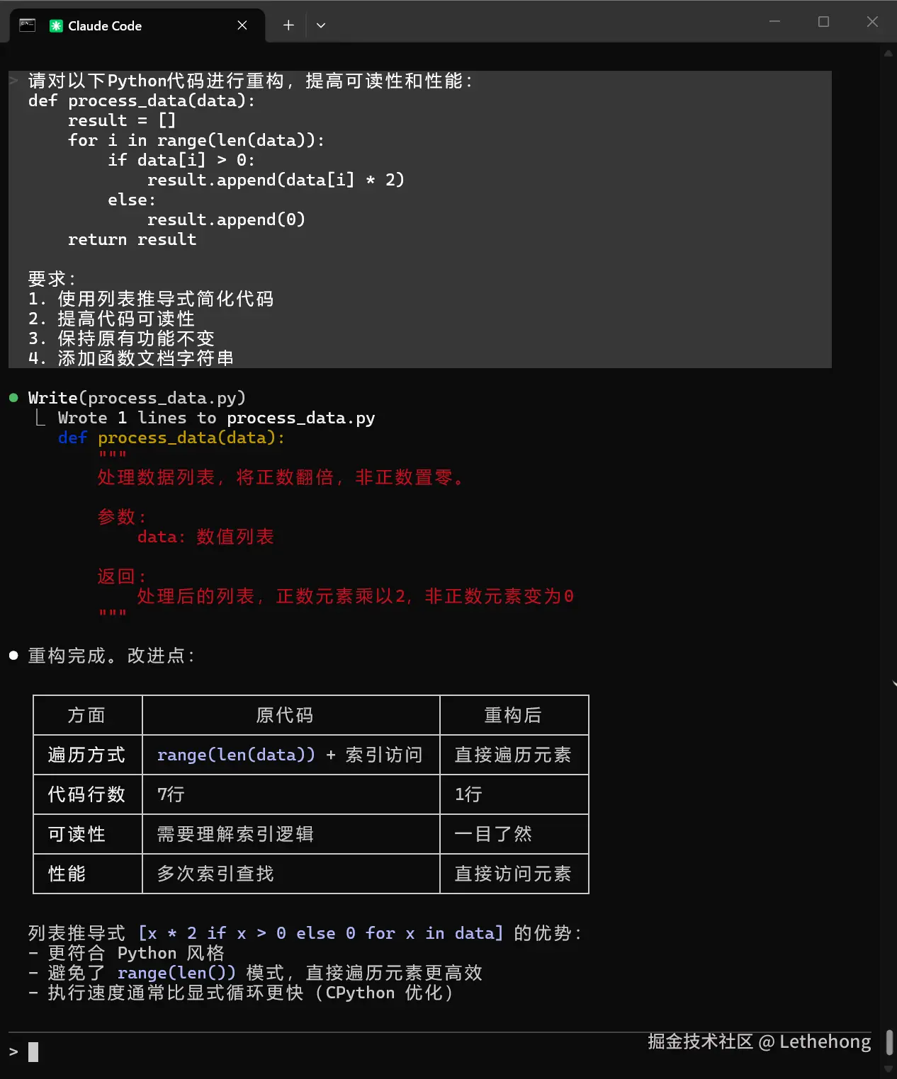 预期输出: GLM-5会生成重构后的代码,使用列表推导式,添加文档字符串,并保持原有功能。