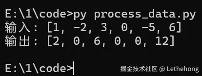 处理后的列表,正数元素乘以2,非正数元素变为0
