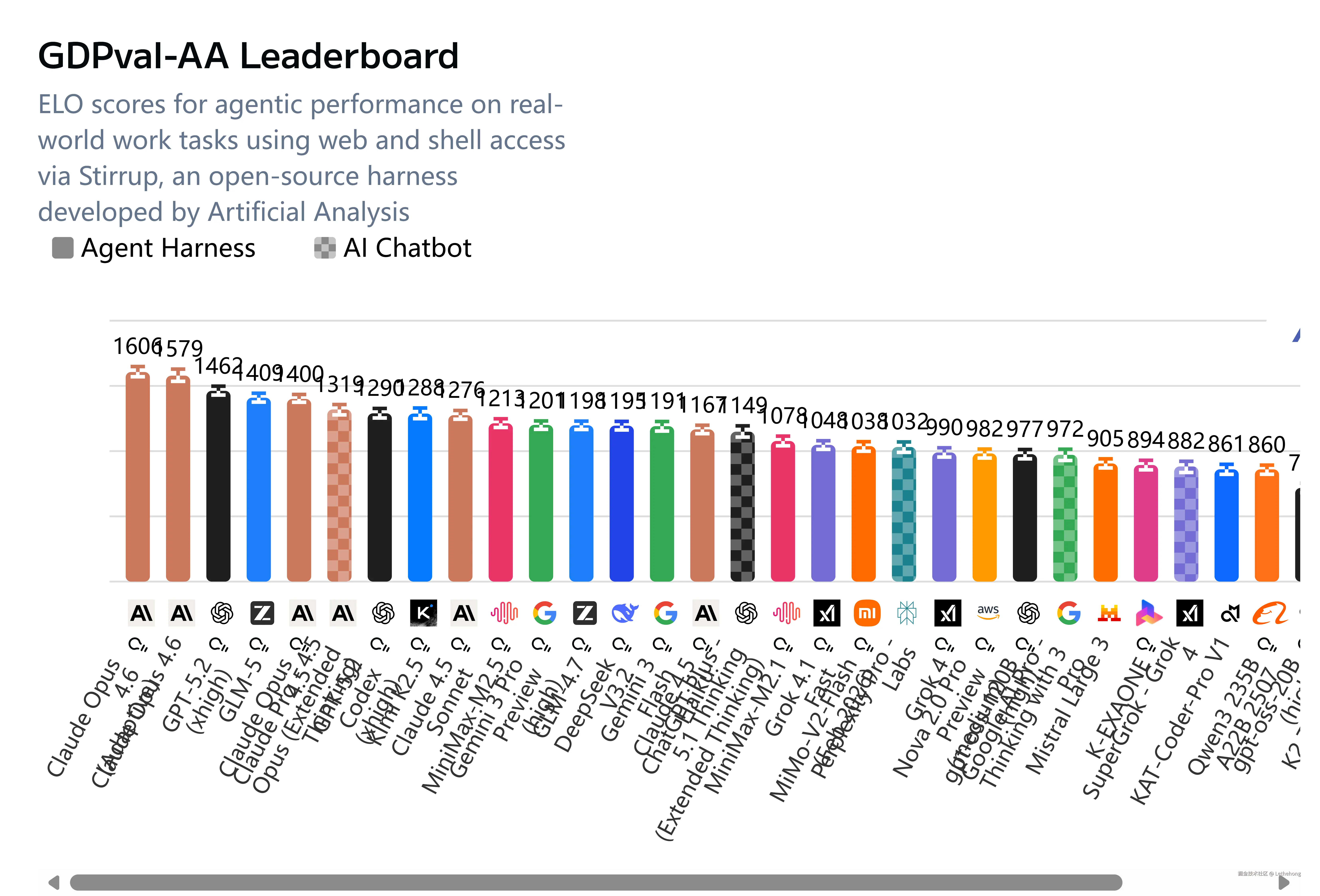 - Agent能力: GLM-5具备卓越的长程任务规划和多工具调用能力。在BrowseComp(联网检索与信息理解)、MCP-Atlas(大规模端到端工具调用)和τ²-Bench(复杂场景下自动代理工具规划与执行)三项权威评测中,GLM-5均取得开源模型最优表现。在Artificial Analysis发布的Intelligence Index v4.0榜单中,GLM-5以49分的综合成绩位列全球第四、开源第一。在GDPval-AA智能体测试中,GLM-5的Elo评分达到1462分,全球第三、开源第一,可自主完成长程复杂工程任务。