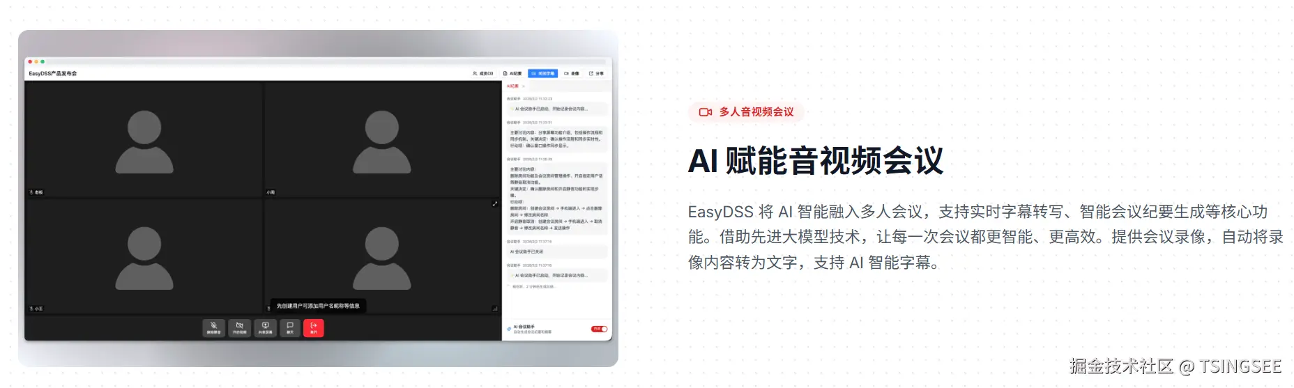 站在当前时点向前展望,语音识别技术在视频会议中的应用才刚刚进入深水区。EasyDSS未来将持续优化实时字幕识别精度、多语言适配能力,升级AI助手重点提炼功能,提供更优质的智能会议服务,助力企业数字化转型与业务创新。