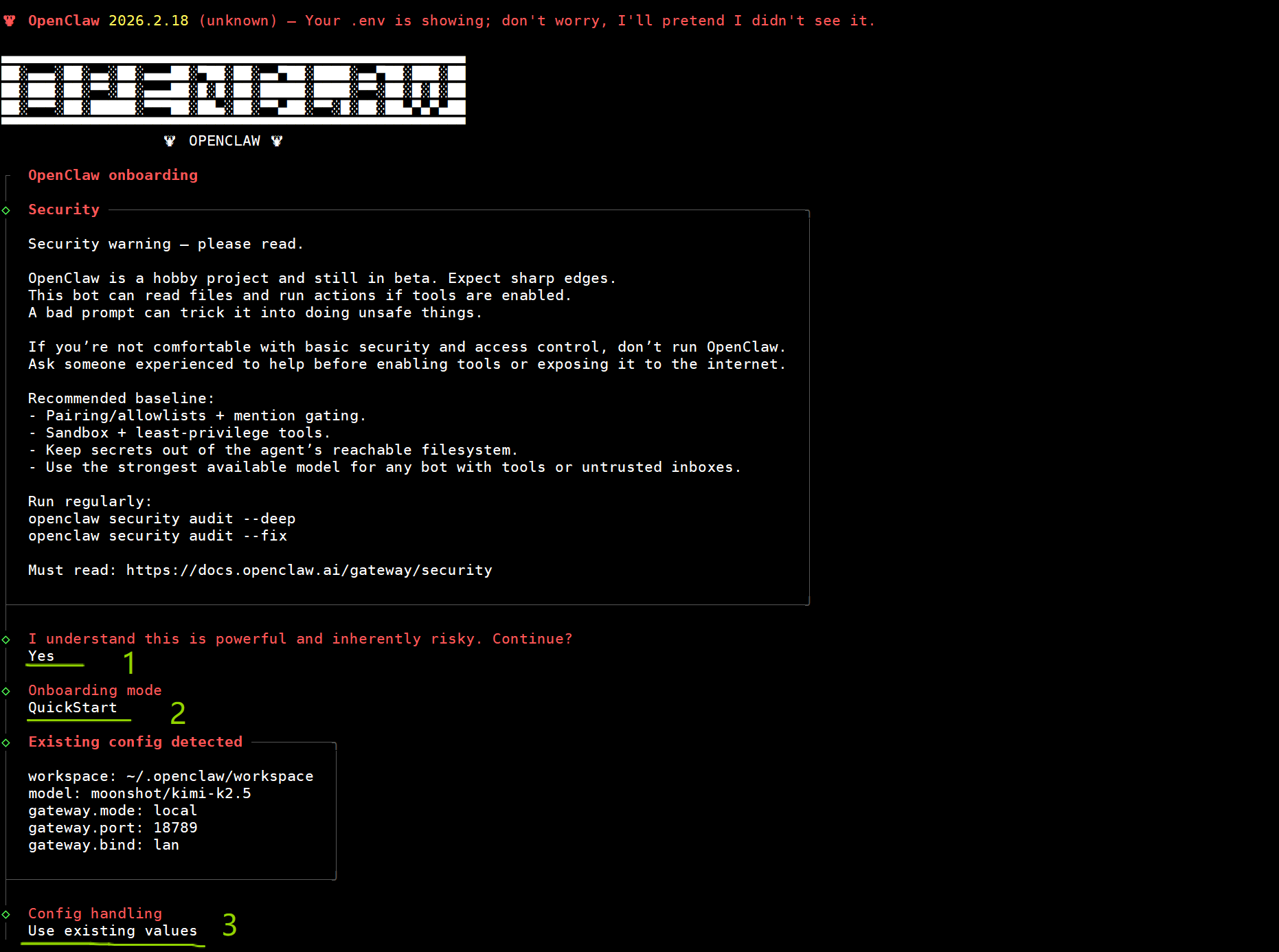 昨晚,我开始在我的一台空白服务器上部署openclaw,还对接了QQ去执行我的指令,大模型我选用的kimi 2.5进行思考。本想去切换为iflow平台的GLM模型,折腾的许久,qq发送指令一直不回复,最终仍然选用的moonshot平台。