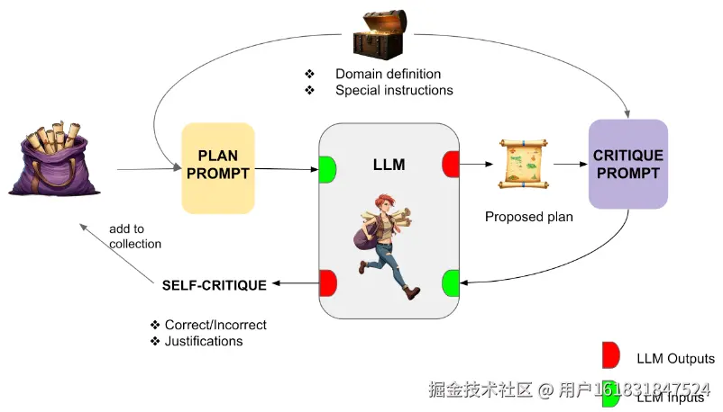 - 利用错误历史: 如果自我批判判定计划是错误的,它不会直接放弃,而是将错误的计划和批判的具体内容(指出哪一步错了、为什么错)作为上下文(Context),再次输入给生成器。