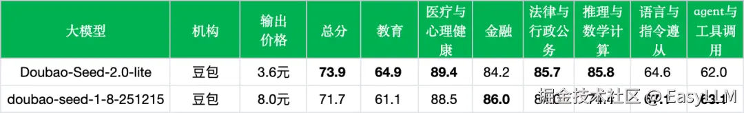 在当前主流大模型竞争格局中,Doubao-Seed-2.0-lite 的综合表现如何?我们从三个维度进行横向对比分析:
