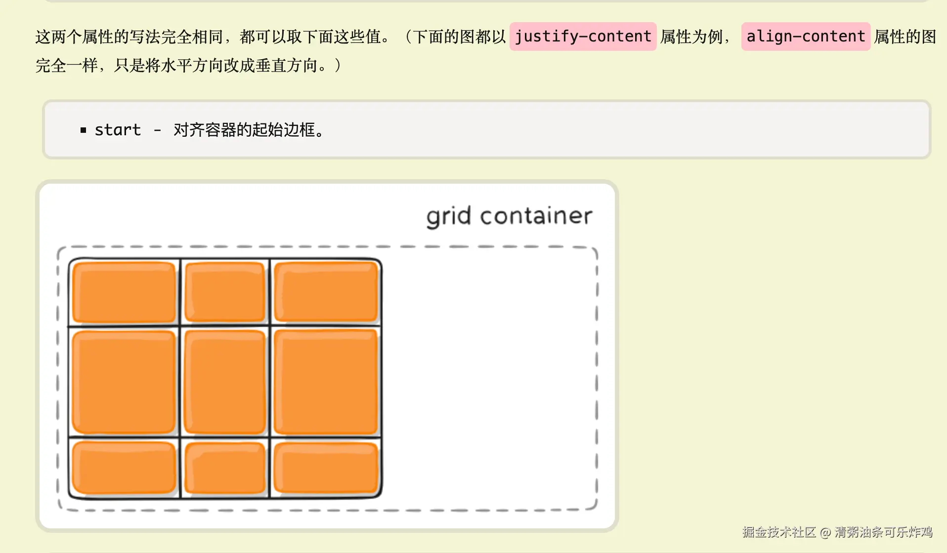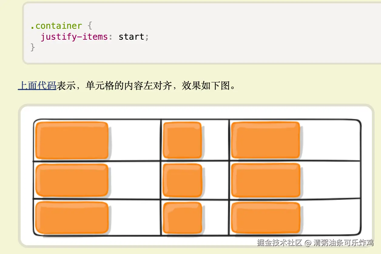 justify-items属性:设置单元格内容的水平位置(左中右),align-items属性:设置单元格内容的垂直位置(上中下)