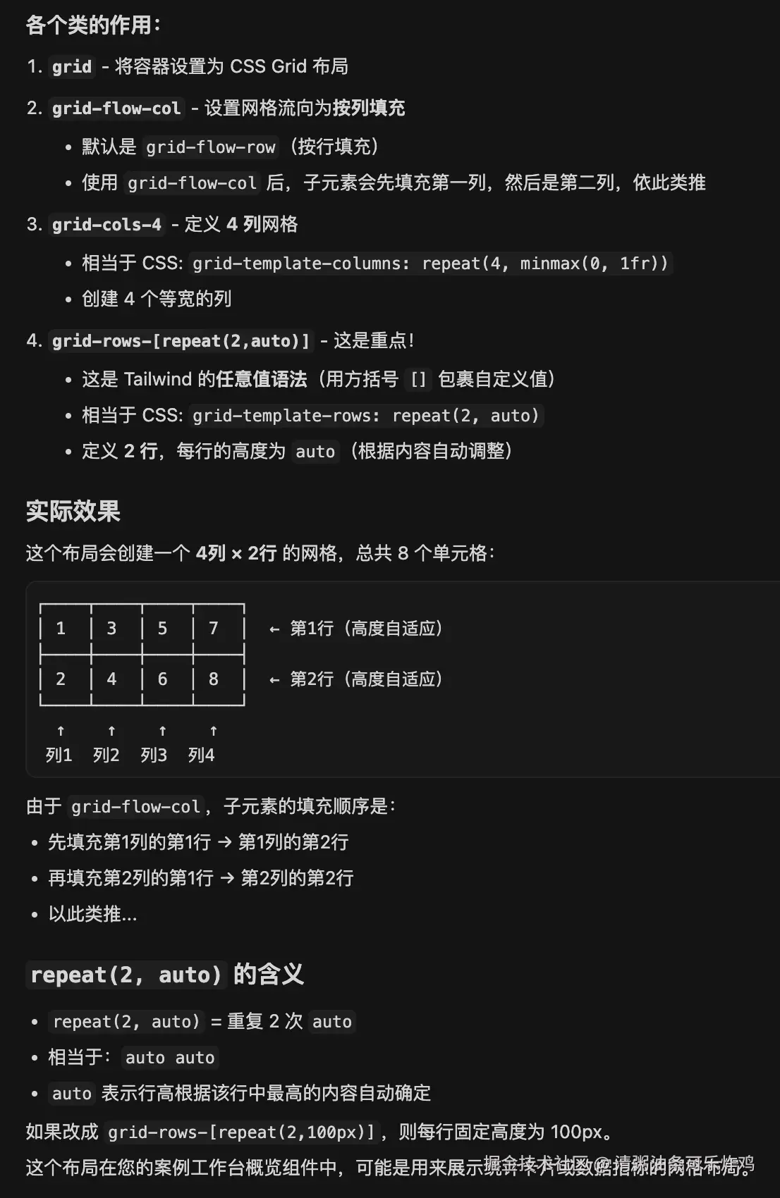 **grid-flow-col** | grid-auto-flow: column; |