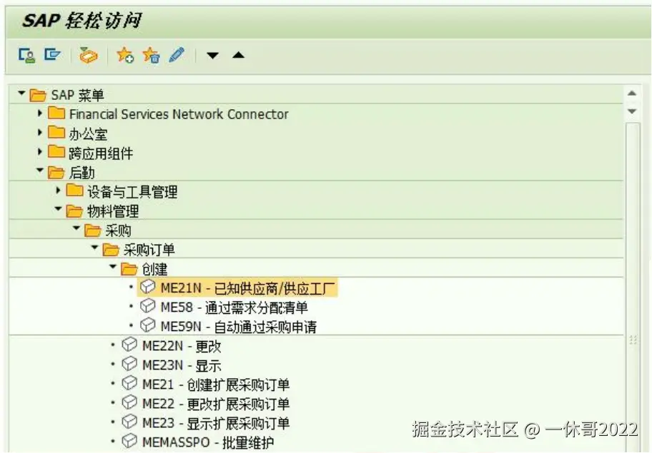 路径:后勤 -> 物料管理 -> 采购 -> 采购订单 -> 创建 -> ME21N - 已知供应商/供应工厂