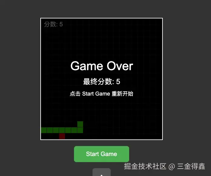 为现有贪吃蛇游戏增加“开始按钮”,并改为手动启动。