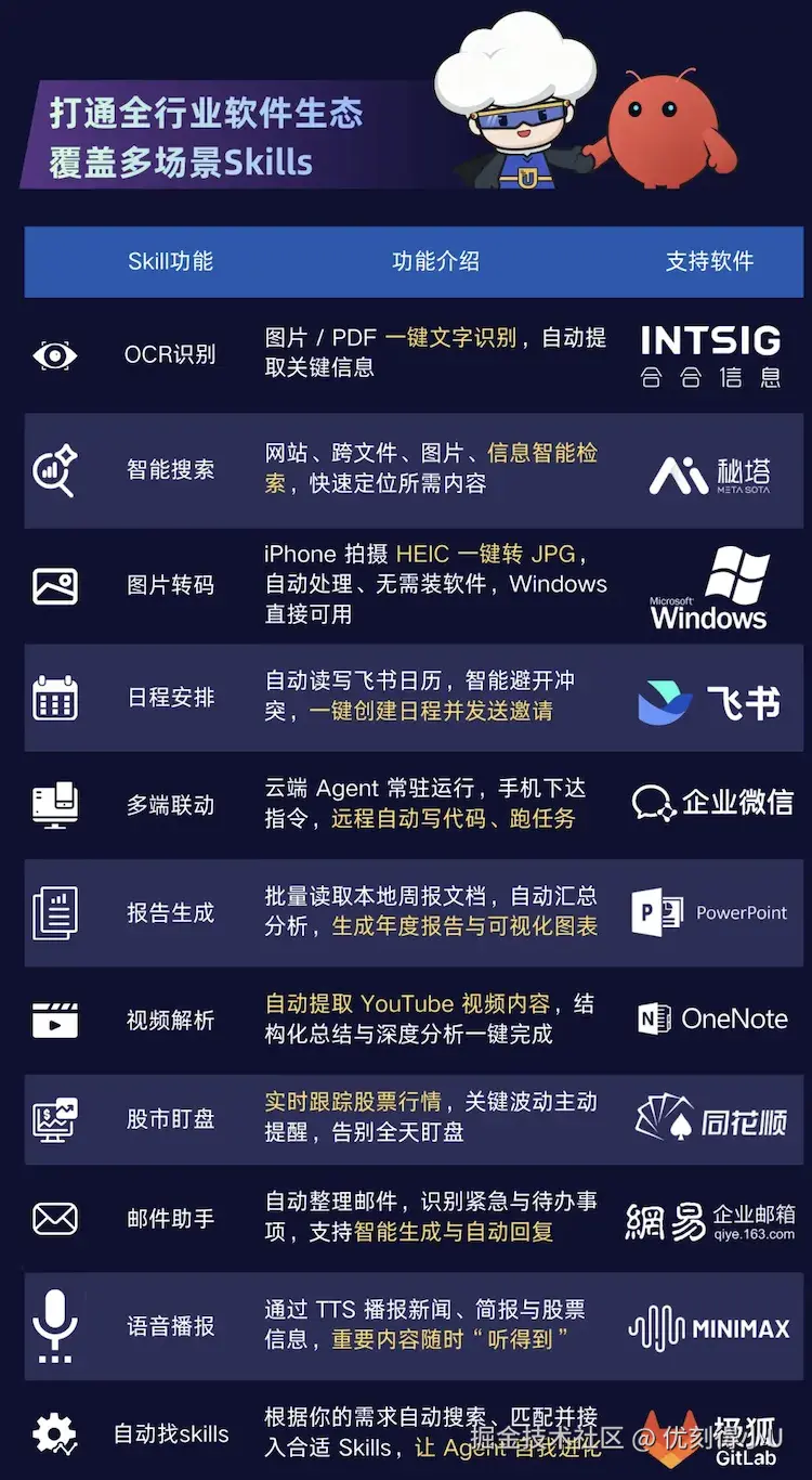 优刻得控制台OpenClaw镜像默认预装Skills列表如下: