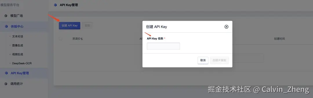 在应用管理页面,找到模型配置,控制台接入优刻得UModelVerse提供的各大主流大模型API能力,首次使用请点击立即创建。