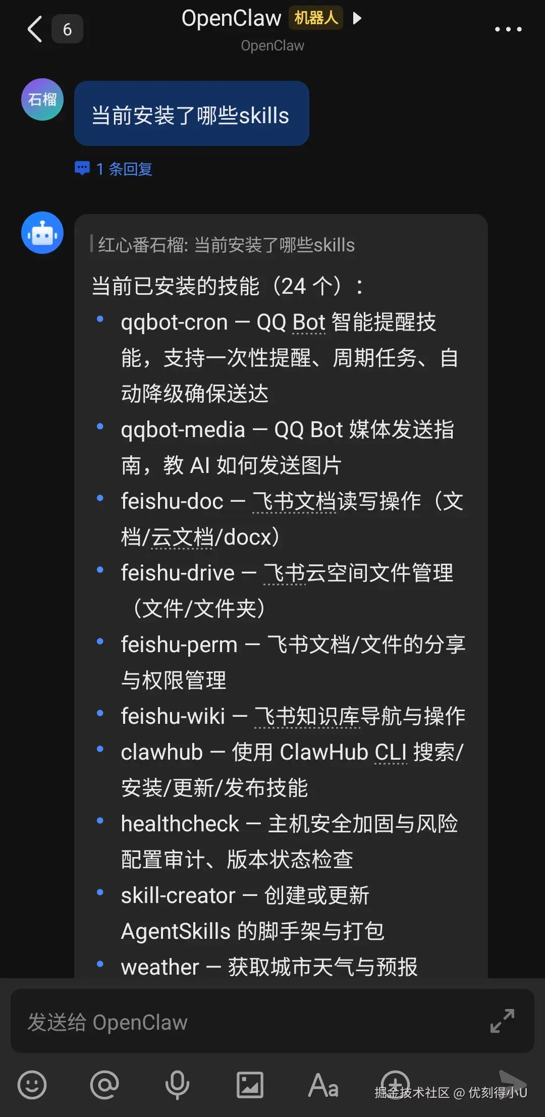 也可以通过对话的方式,安装新的Skills或查看已安装的Skills列表。