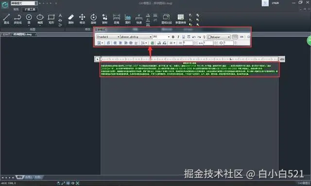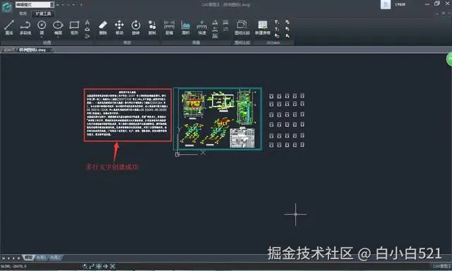 5、点击文字格式右边的【OK】按钮或者在空白处任意点击一下,返回到图纸界面,多行文字创建成功。
