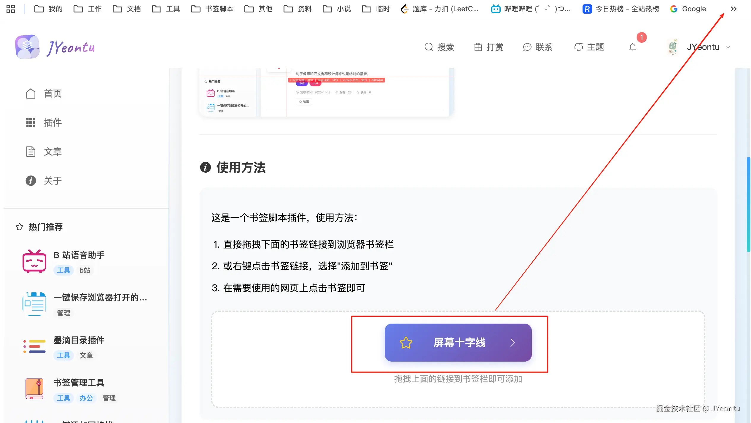 点击书签,立刻在当前页面生成跟随鼠标的十字准星。