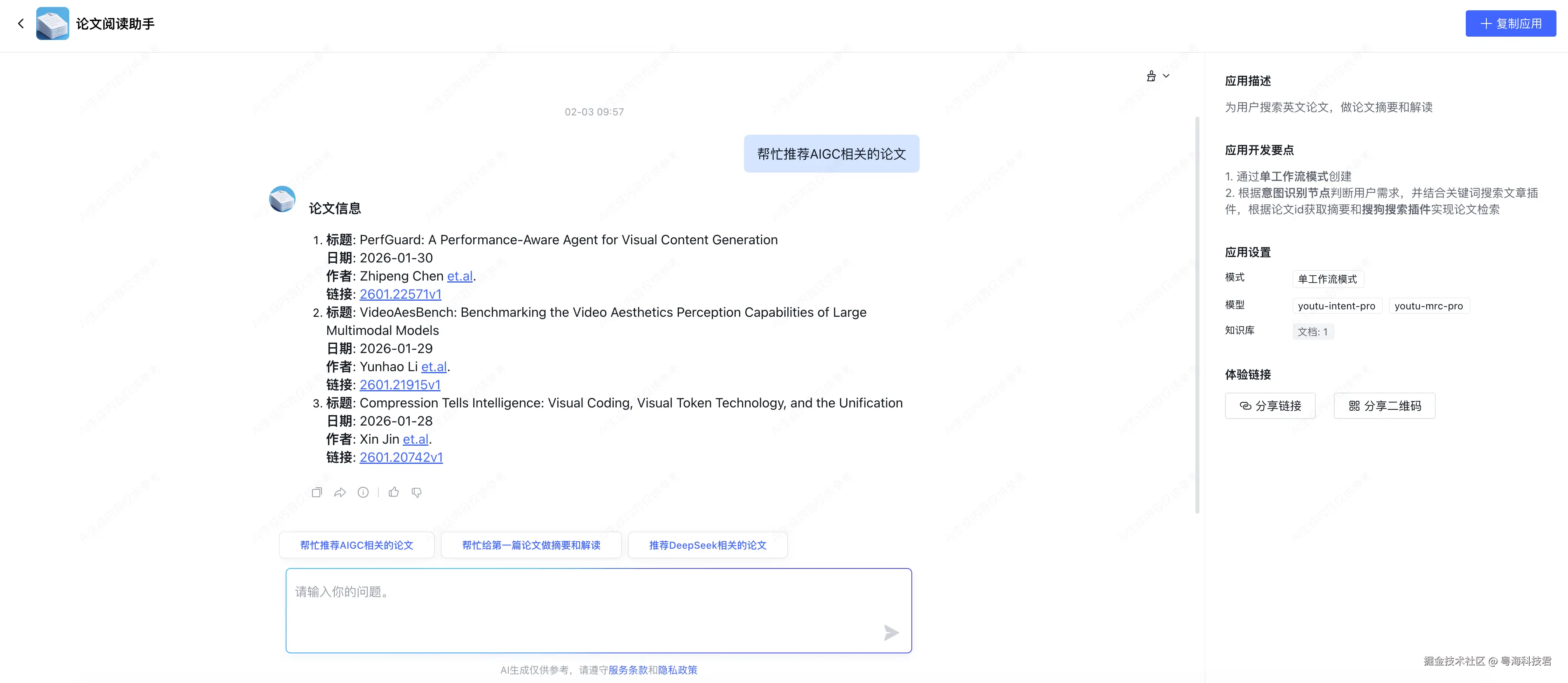 ● Prompt:“已知相关论文内容为{{mcp_result}}, 整理论文标题、时间及论文地址链接,返回用户友好的信息”