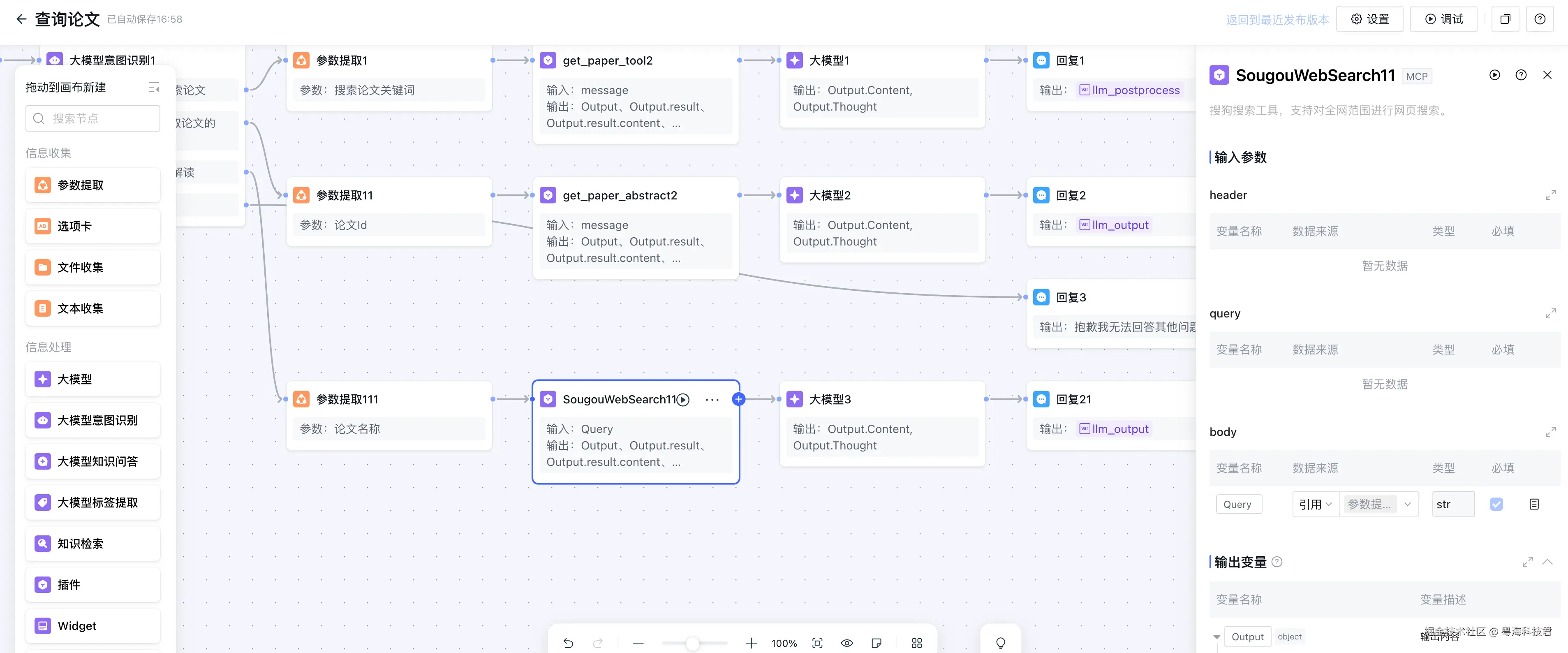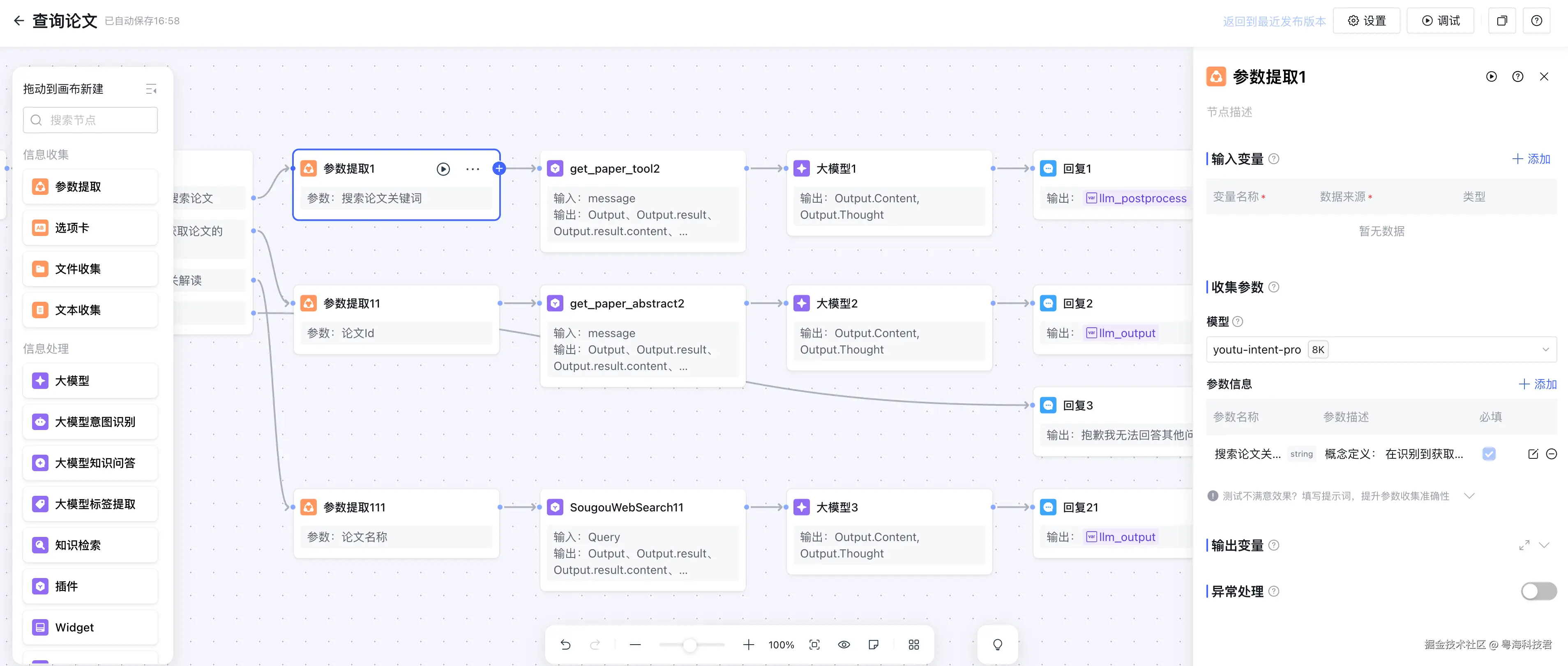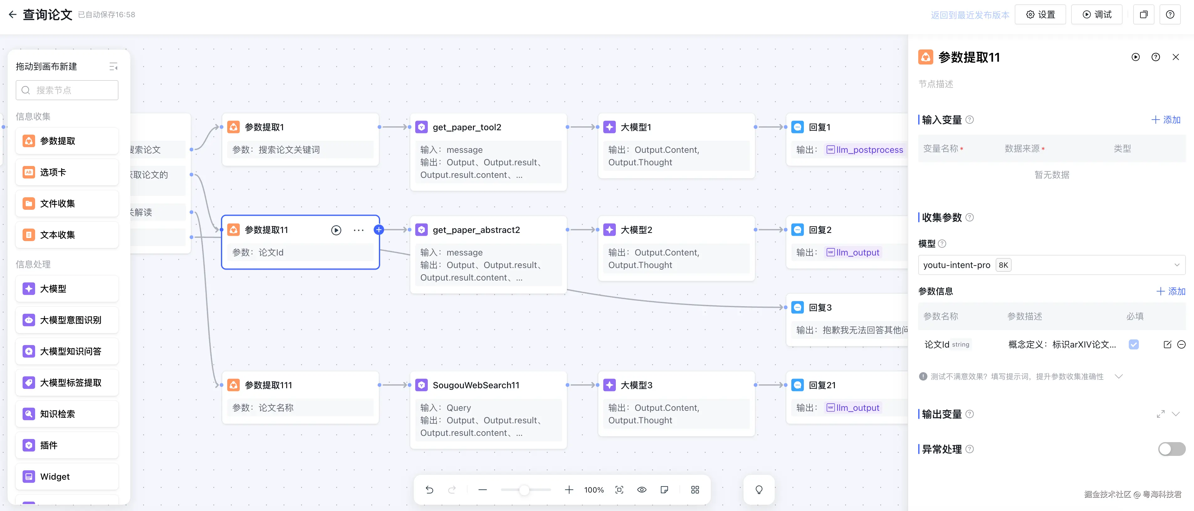 本文将深入解析一个基于ADP构建的论文阅读助手智能体,该系统通过意图识别技术,能够智能理解用户查询需求,并提供三种核心功能:关键词搜索论文、获取论文摘要、搜索论文解读。通过分析实际的工作流配置文件,我们将了解这个系统的真实架构和技术实现。