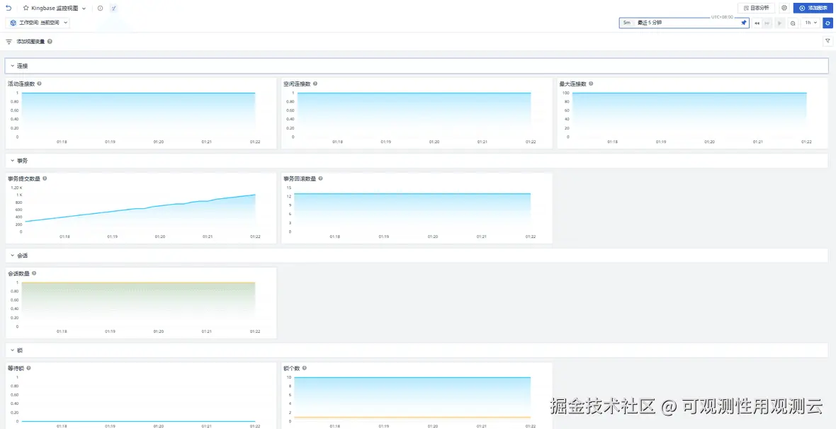 通过将 KES(KingbaseES)数据库 接入观测云,用户可以实现对国产数据库运行状态的持续可观测。观测云能够统一采集数据库连接、事务吞吐、SQL 性能等关键指标,并通过可视化场景视图和智能告警,帮助运维人员及时发现性能瓶颈和潜在风险。
