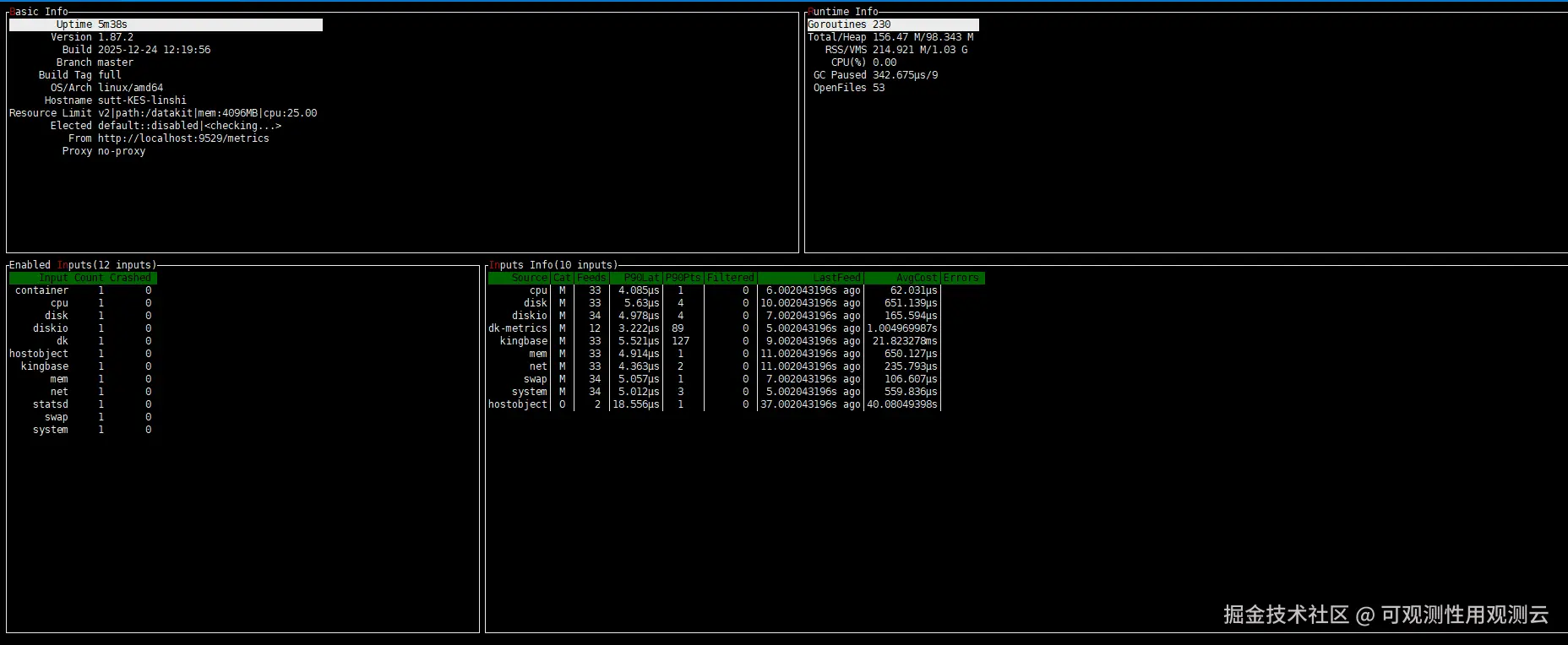 配置完成后,DataKit 将定期从 KES 的系统视图中采集运行指标,并自动上报至观测云。