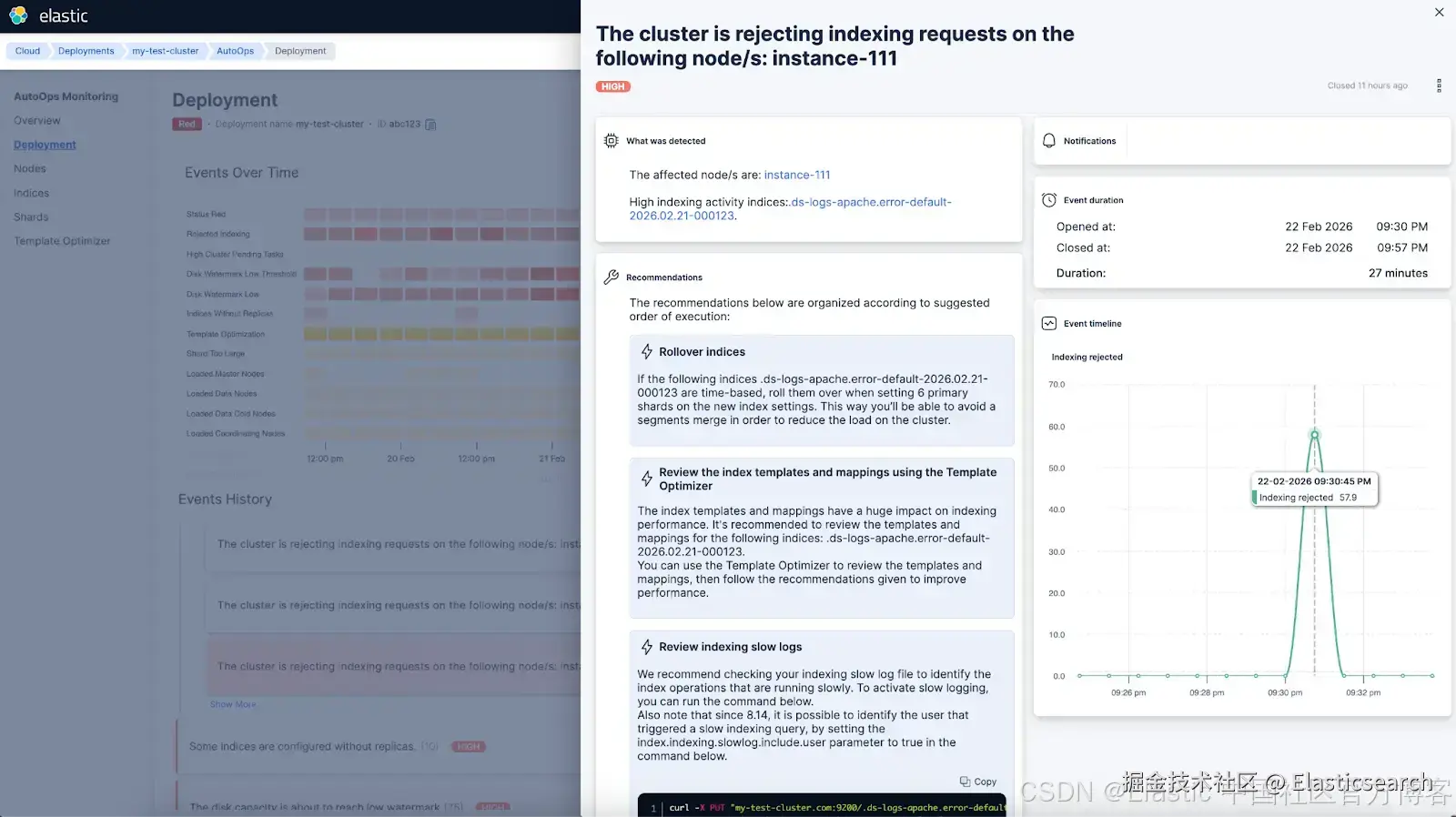 通过实时问题检测和可执行的建议,简化你的 Elasticsearch 运维,以优化性能并降低成本。 AutoOps 适用于 cloud 和 self-managed 部署。了解更多 AutoOps。
