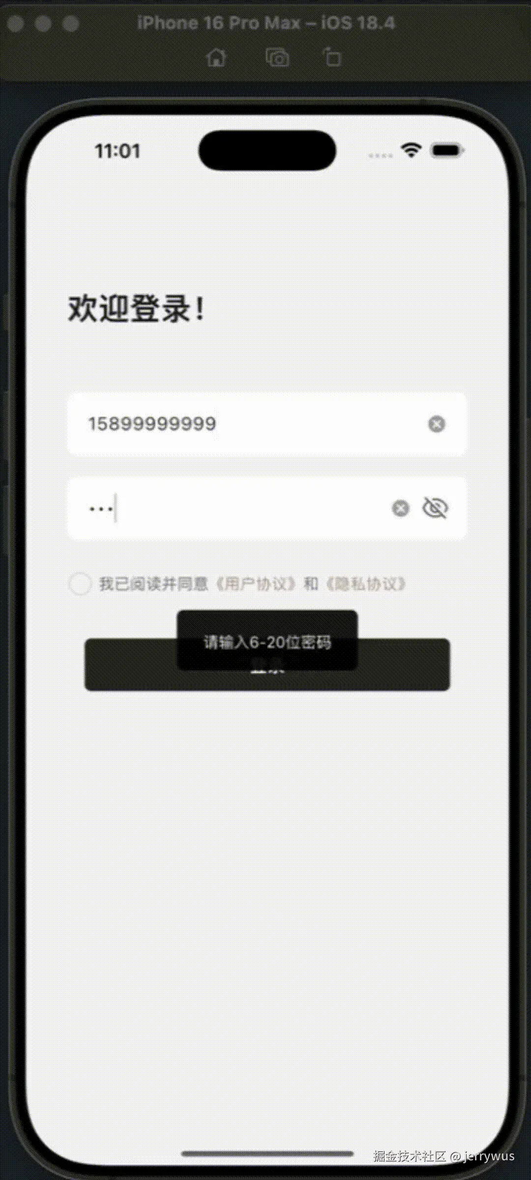 | TC-05 | 未勾选协议 | Toast "请先阅读并同意..." |