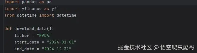 本次分析所使用的数据通过 Python 的 yfinance 库从 Yahoo Finance 获取,数据覆盖时间为 2024 年 1 月 1 日至 2024 年 12 月 31 日,包含全年主要交易日。