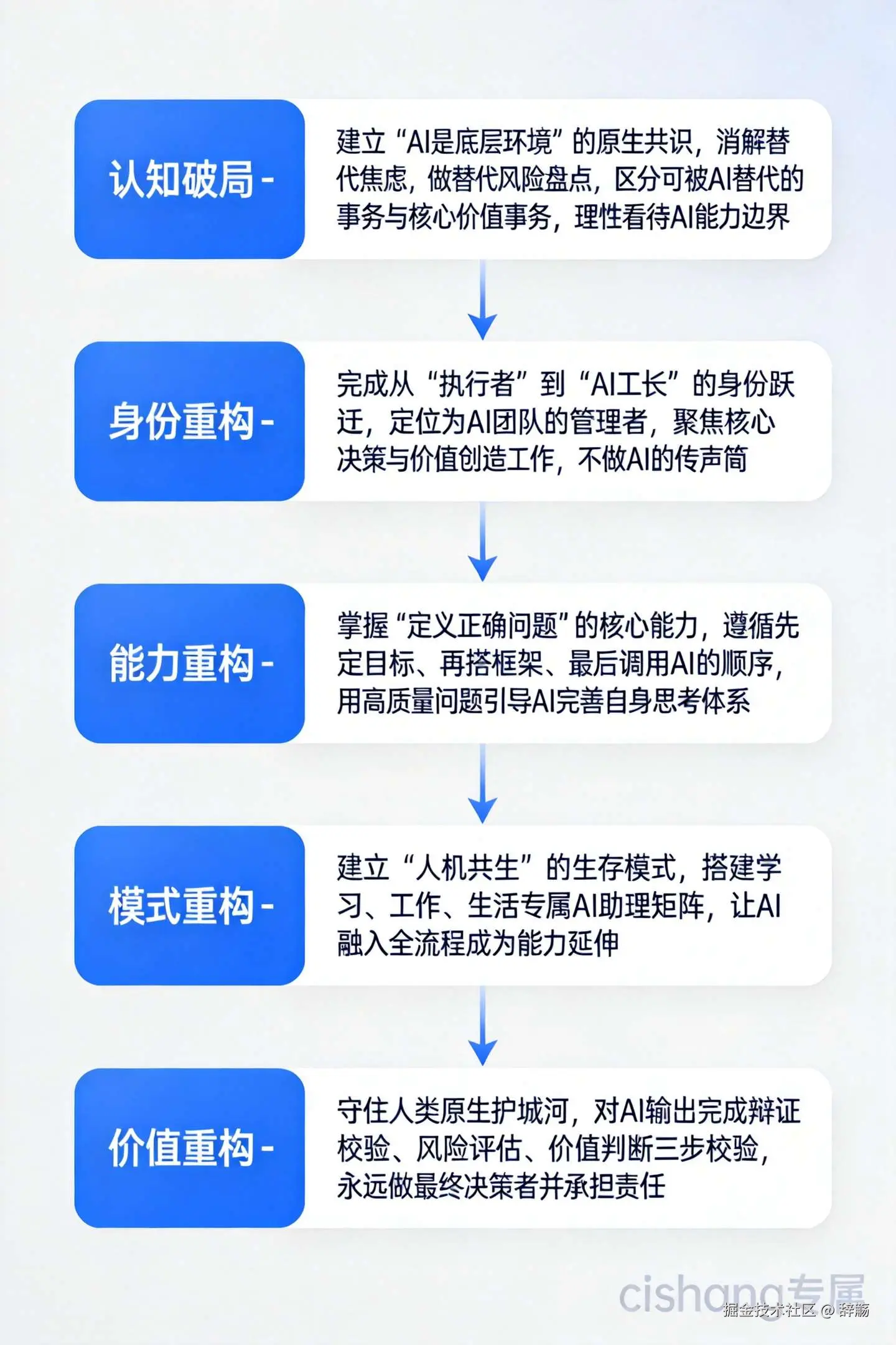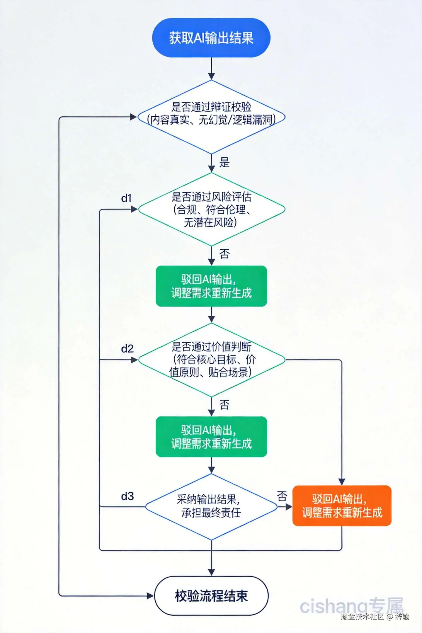 - 价值判断:确认内容是否符合自己的核心目标、价值原则,是否贴合真实场景。 永远做最终的决策者,为所有结果承担最终责任。