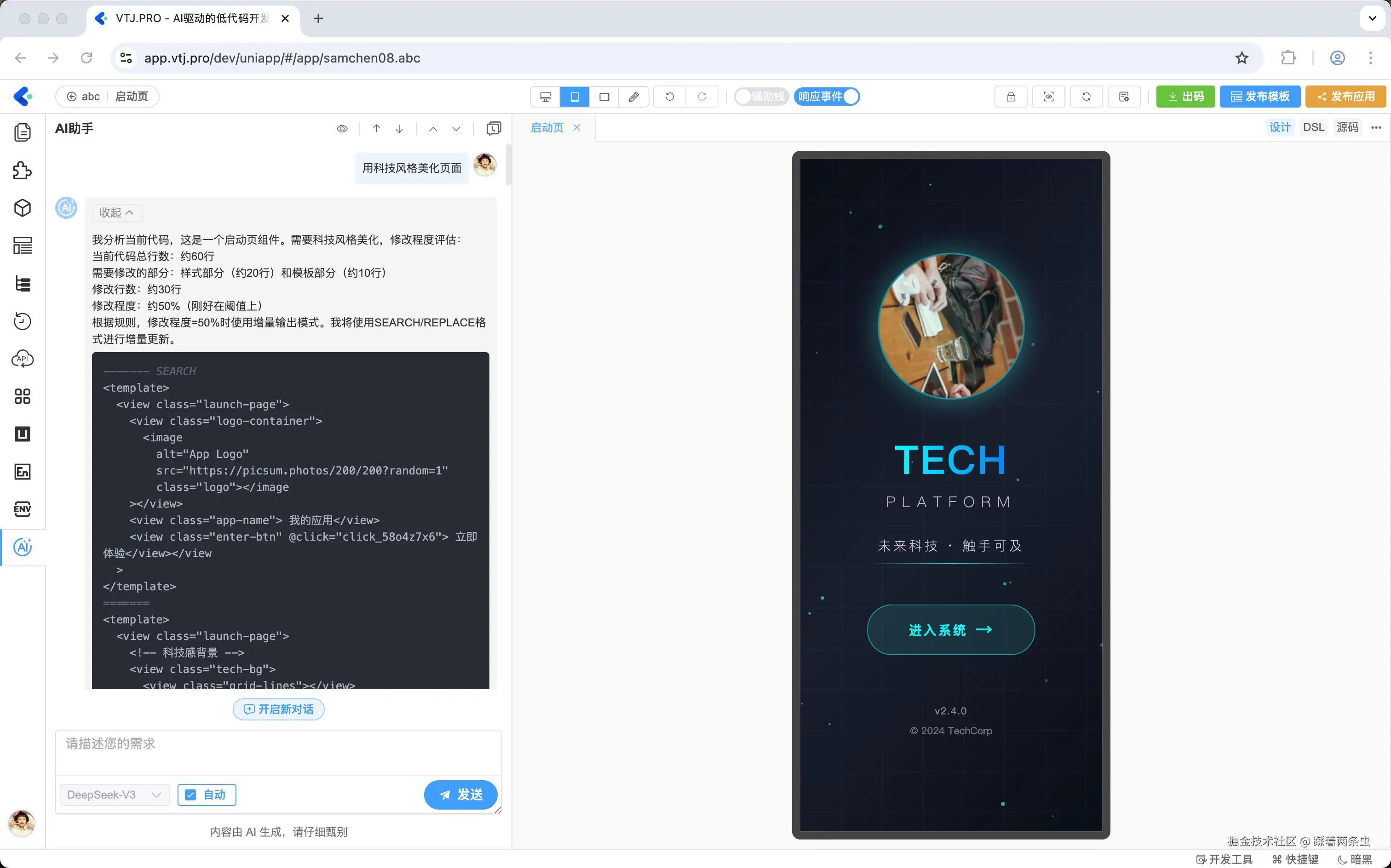 - 本地部署:执行 npm create vtj@latest -- -t app,5 分钟启动第一个低代码项目