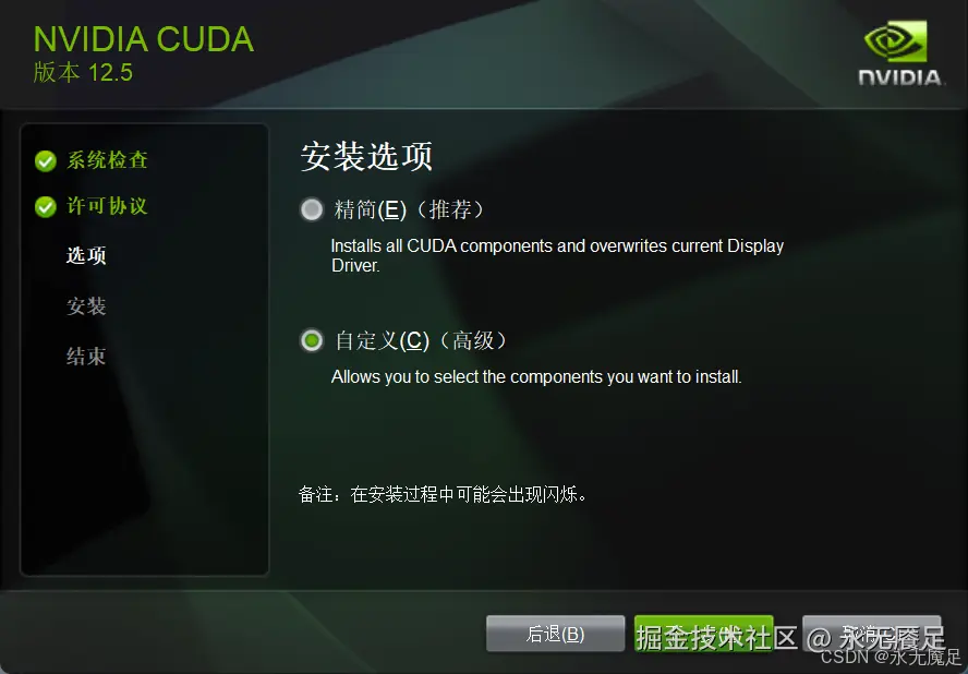 下载完成后选择自定义安装(如果不想更改驱动版本):