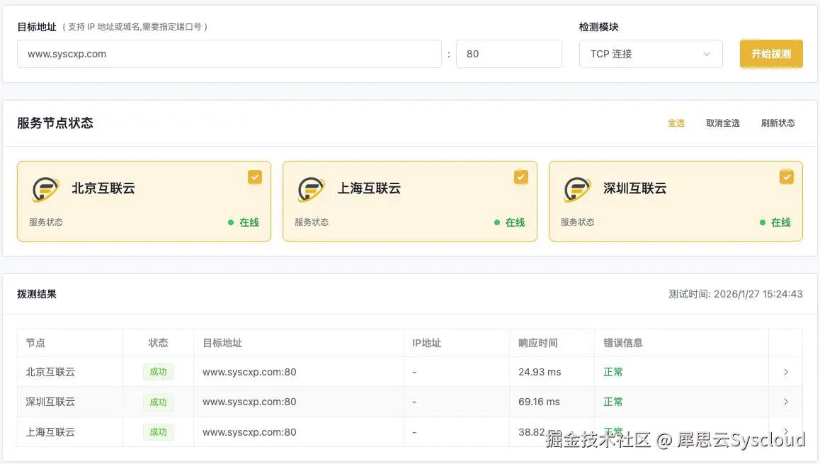 2、多地区网络向目标站点 TCP连接检测