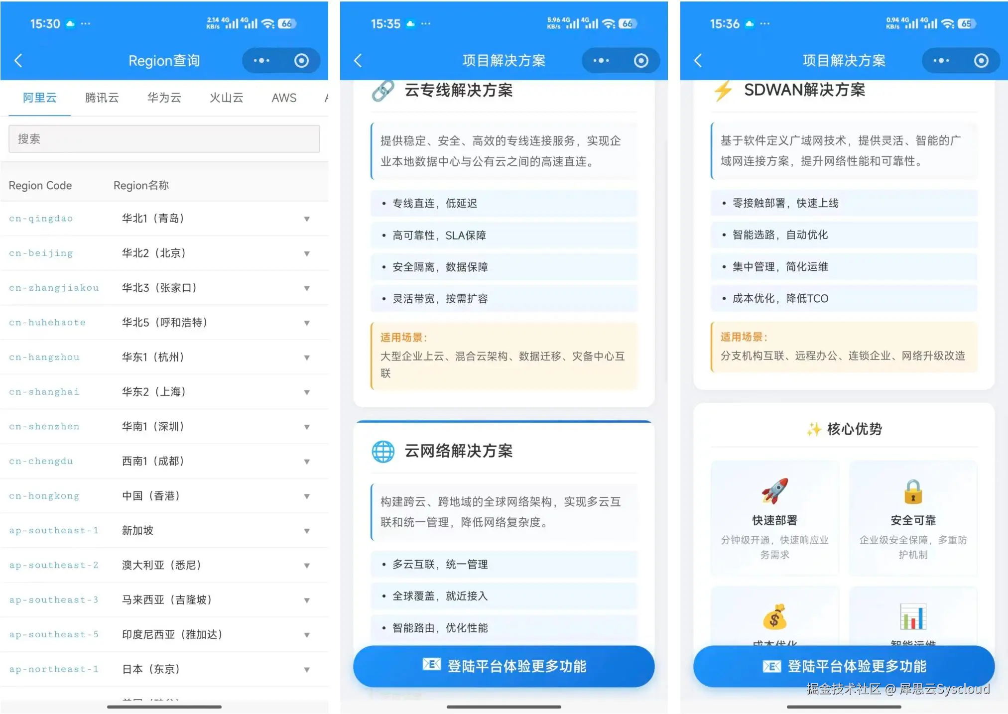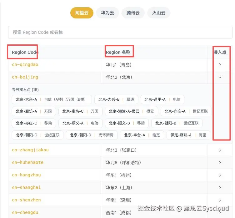 **3、主流云Region与接入点查询:**极速部署全球云站点、最优路径规划。