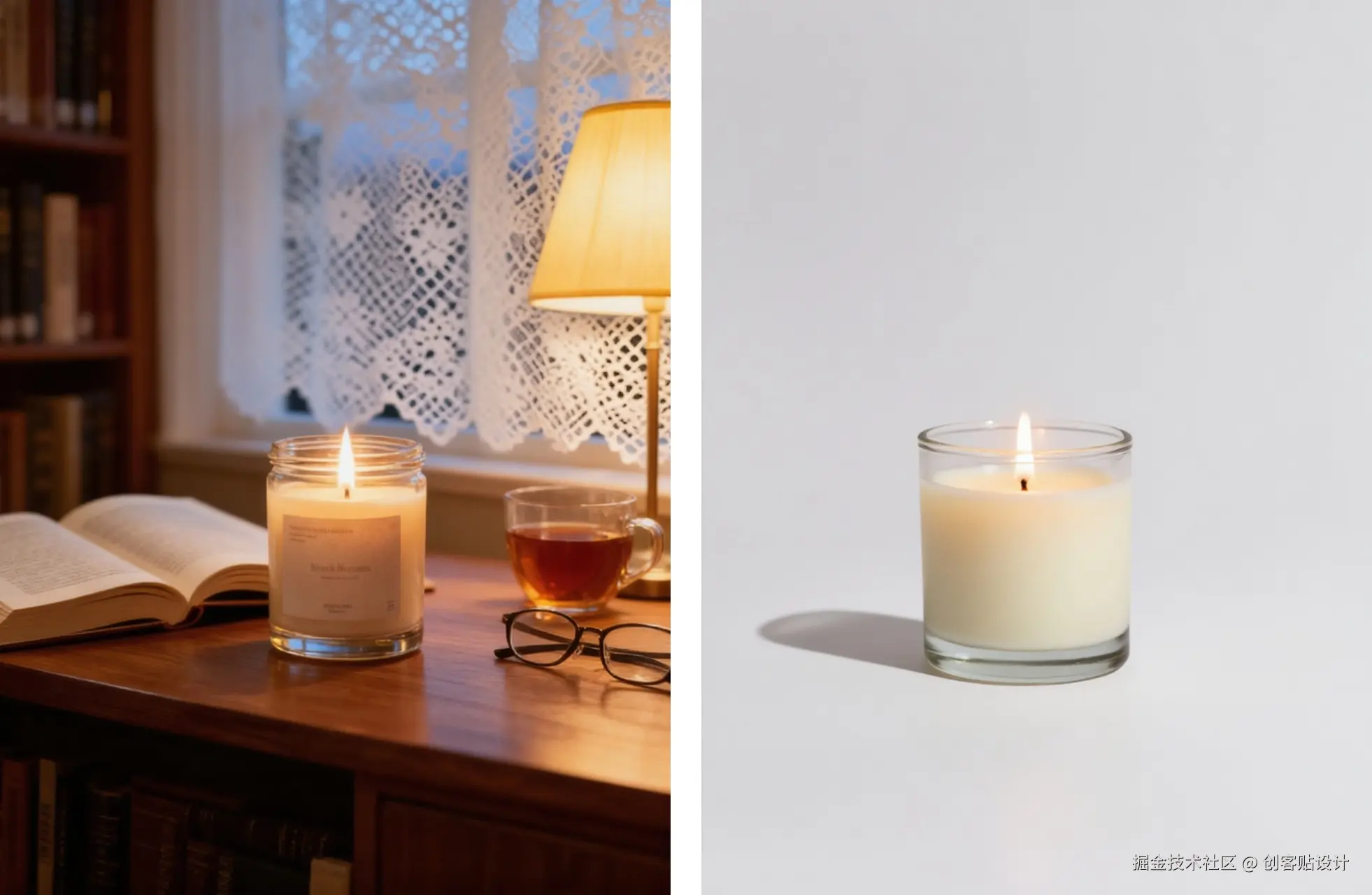 这个效果不错吧,基本看不出AI感,而且每张场景也都是符合“香薰蜡烛”的使用场景