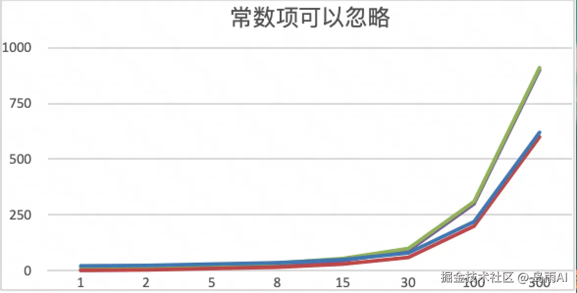 - 而n^3+5n 和 6n^3+4n ,执行曲线分离,说明多少次方是关键