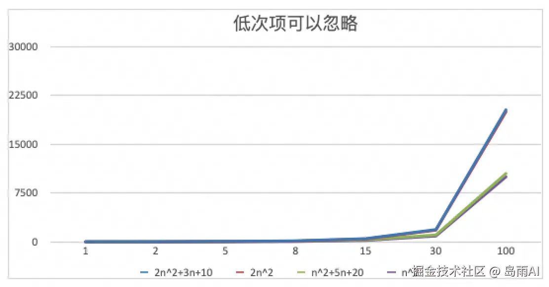 - 2n+20 和 2n 随着n 变大,执行曲线无限接近, 20可以忽略