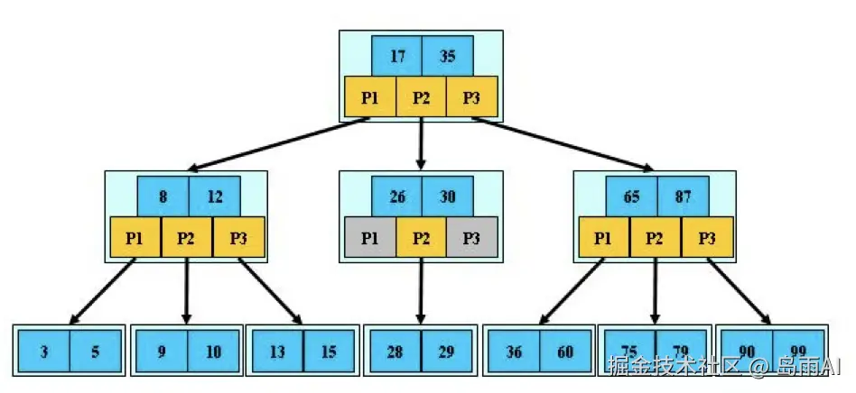 - B树的阶:节点的最多子节点个数。比如2-3树的阶是3,2-3-4树的阶是4