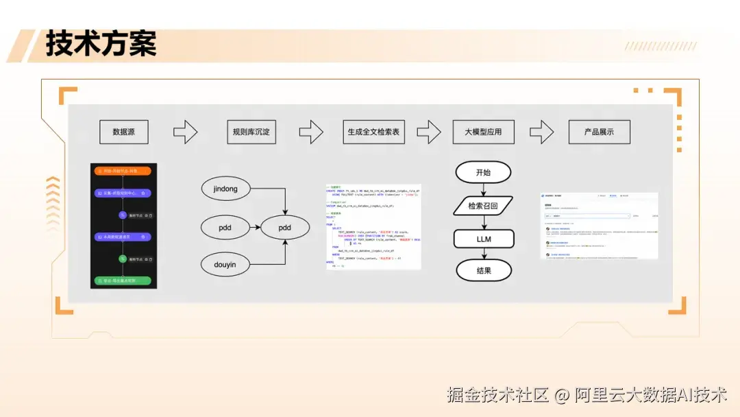 团队构建了基于 Hologres 全文检索的规则分析系统:通过爬虫采集规则,清洗后存入 Hologres 并建立全文索引。用户输入检索意图(如“查看各平台关于7天无理由退货的规定”),系统召回相关条款,再由大模型进行对比总结,最终在前端展示结构化对比结果。