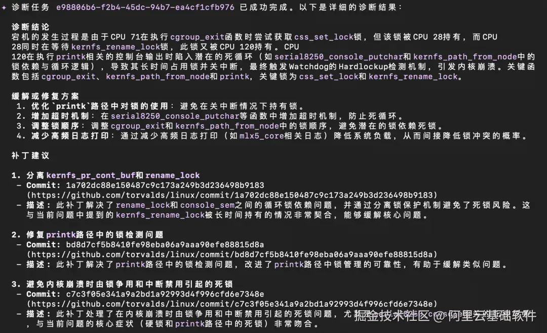实际效果:Hardlockup 死锁问题的智能诊断